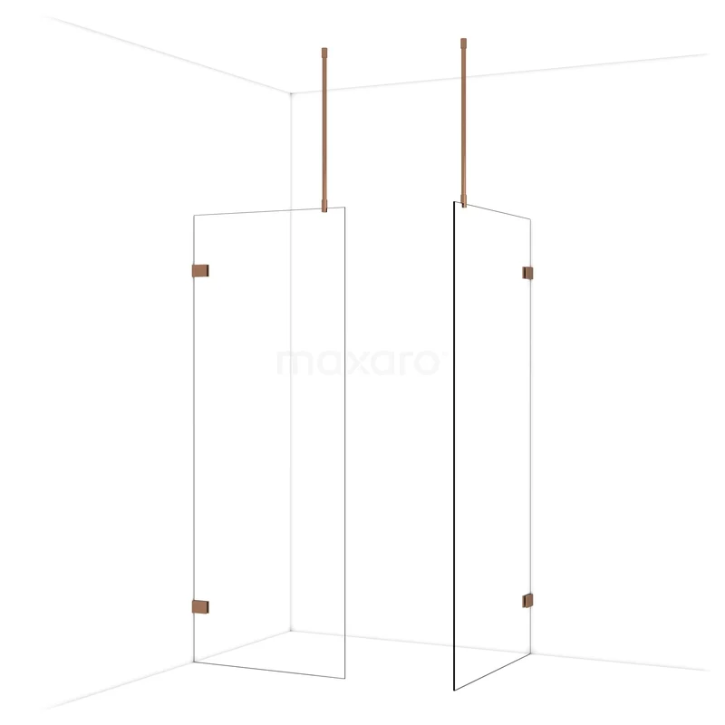 Diamond begehbare Dusche | 90x80 cm Glänzendes Kupfer 2 feste Wände