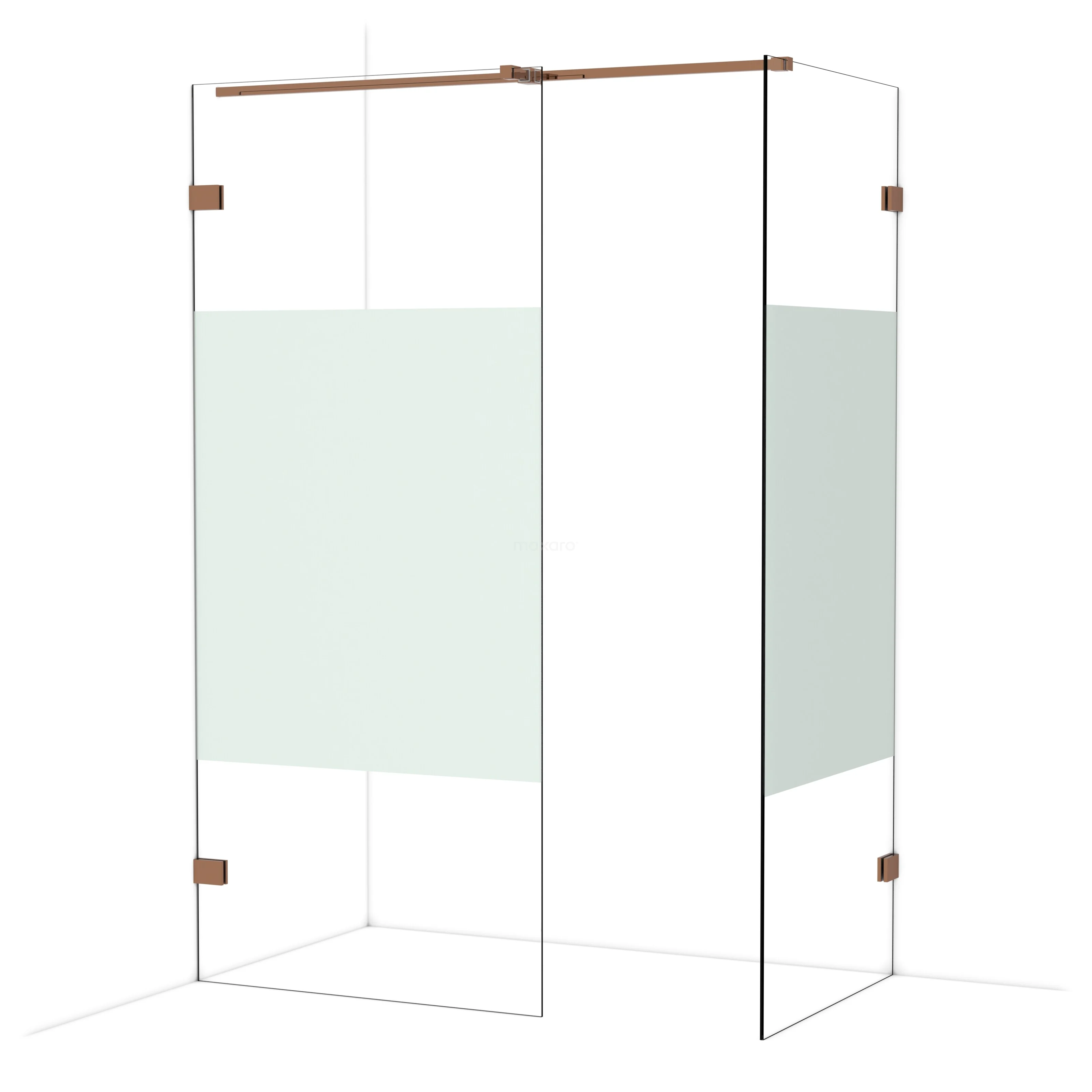 In der stilvollen begehbaren Dusche Diamond mit den Maßen 90x80 cm können Sie jeden Tag herrliche Duschsitzungen genießen. Sie hat ein auffälliges Design aus glänzendem Kupfer und verfügt über Klarglas mit mattem Streifen für mehr Privatsphäre.