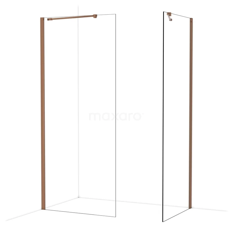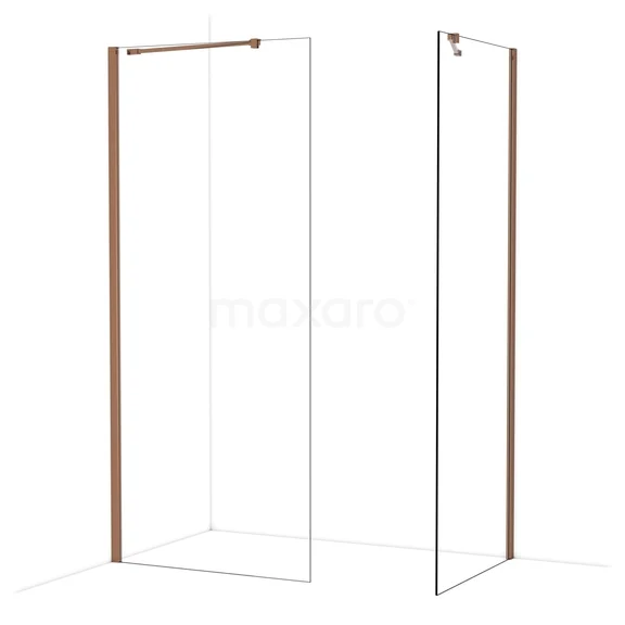Diamond begehbare Dusche | 90x80 cm Glänzendes Kupfer 2 feste Wände