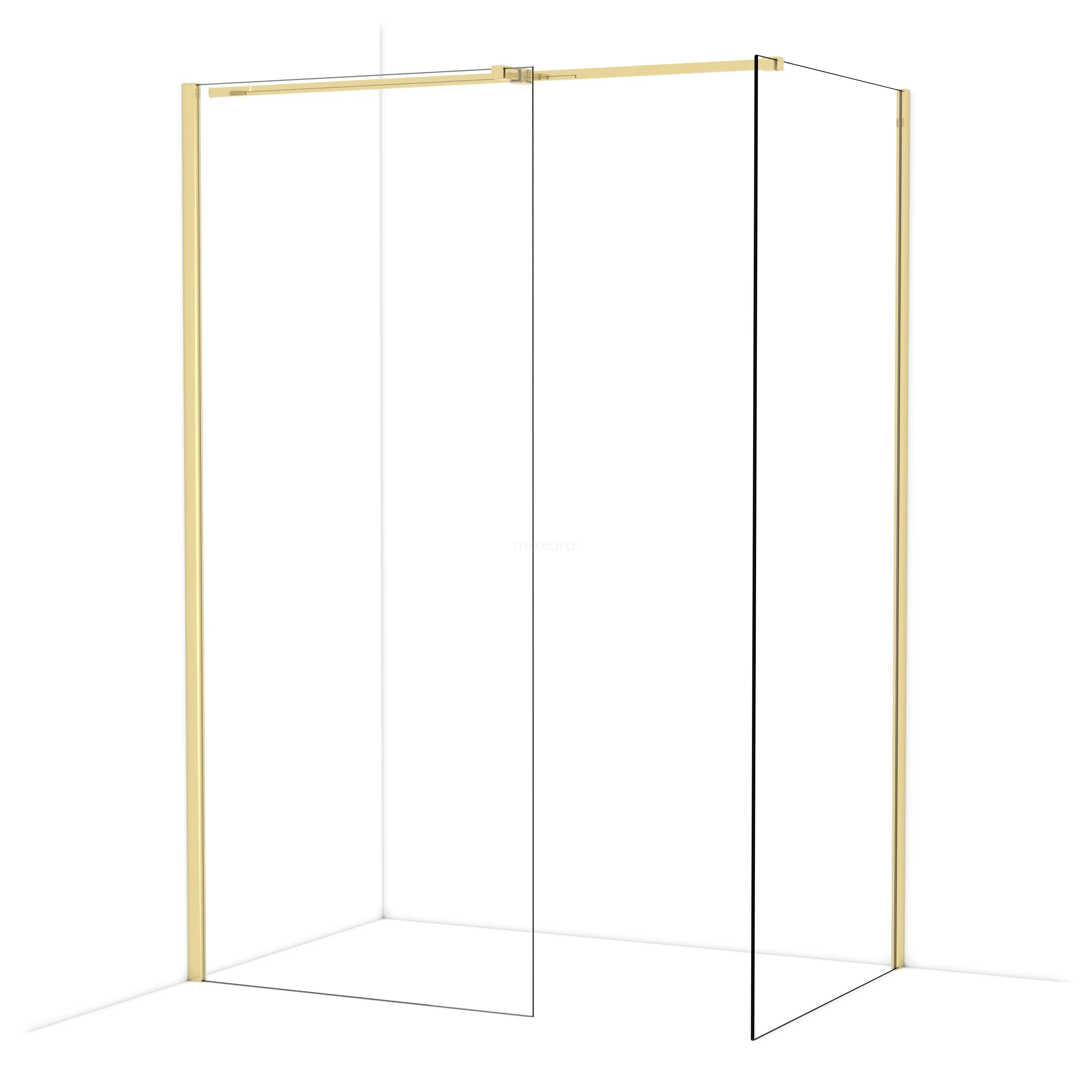 Diamond begehbare Dusche | 90x90 cm Glänzendes Hellgold 2 feste Wände