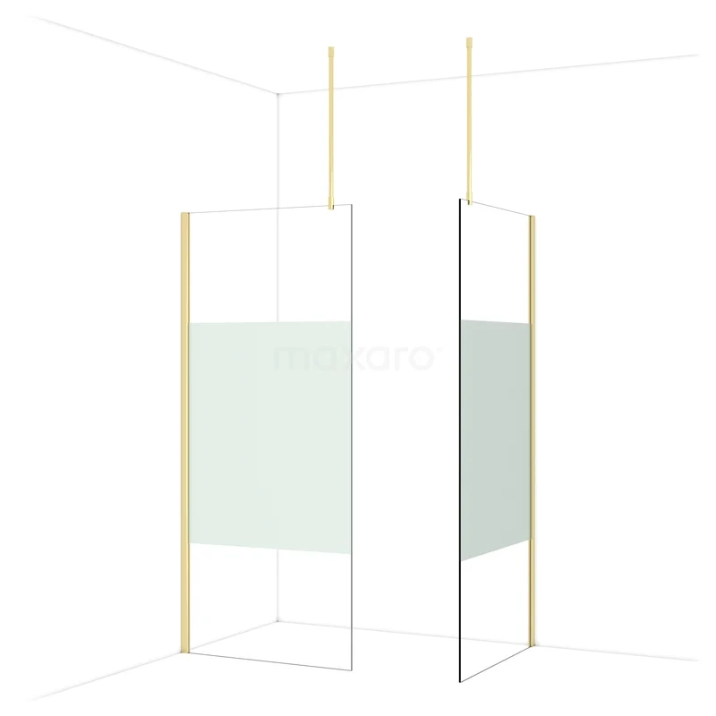 In der stilvollen begehbaren Dusche Diamond mit den Maßen 90x90 cm können Sie jeden Tag herrliche Duschsitzungen genießen. Sie hat ein raffiniertes und luxuriöses Design in glänzendem Hellgold und verfügt über Klarglas mit mattem Streifen für mehr Privatsphäre.