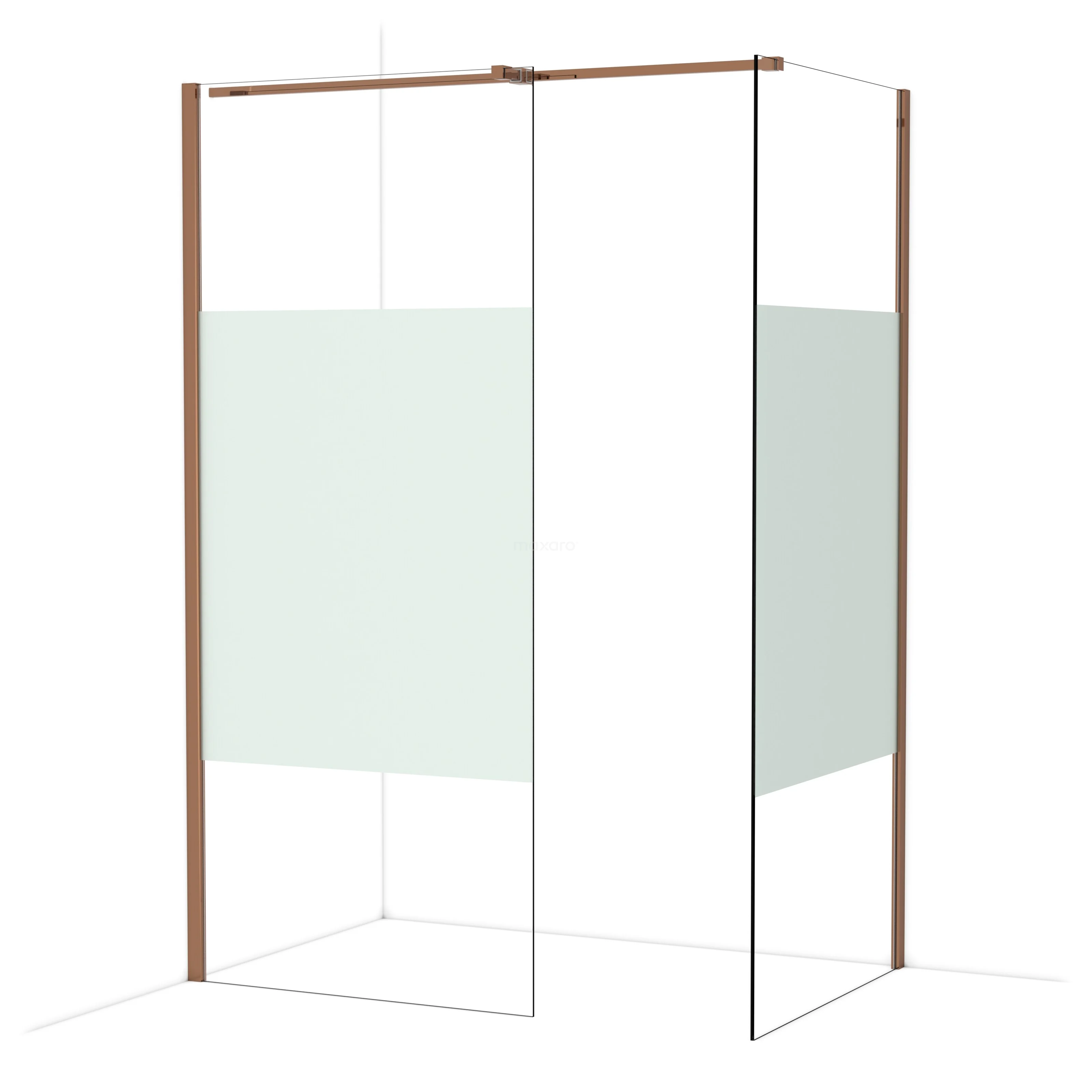 Diamond begehbare Dusche | 90x90 cm Glänzendes Kupfer 2 feste Wände