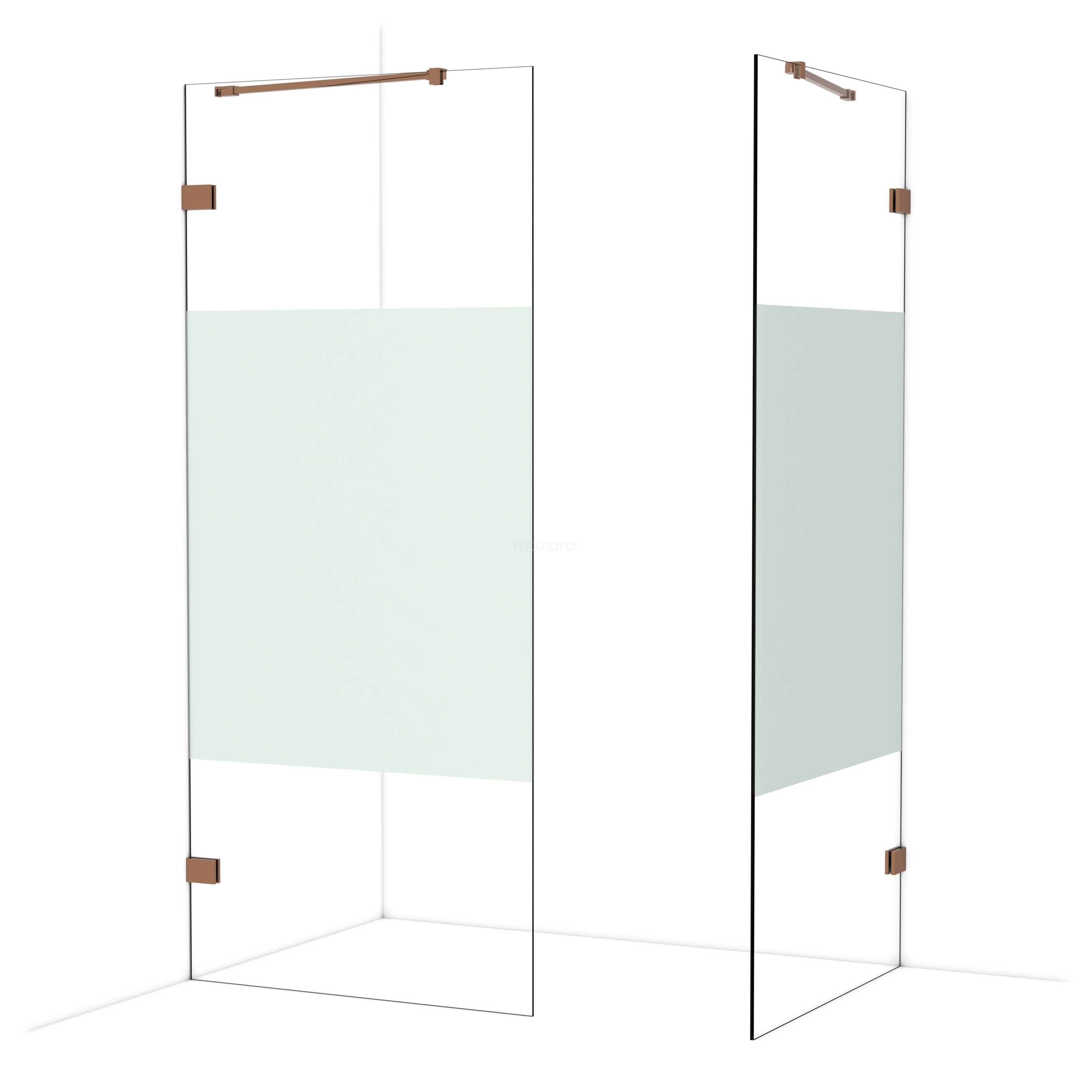 Diamond begehbare Dusche | 90x90 cm Glänzendes Kupfer 2 feste Wände