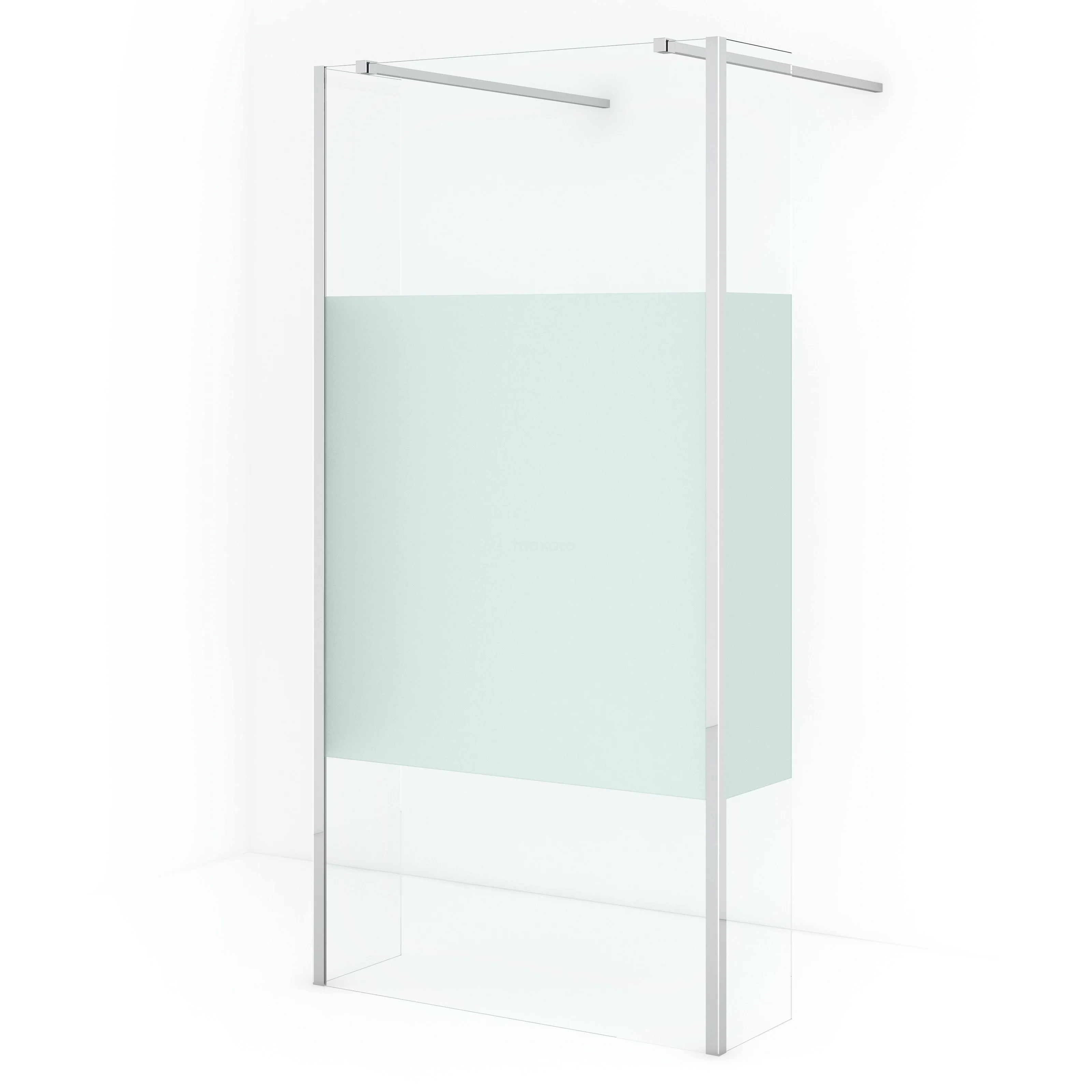 In der stilvollen begehbaren Dusche Diamond können Sie jeden Tag herrliche Duschsitzungen genießen. Sie ist verchromt und verfügt über Klarglas mit mattiertem Streifen. Die freistehende Wand hat ein festes Maß von 96,7 cm, einschließlich der Eckprofile. Die Seitenwände haben ein festes Maß von 35 cm, einschließlich des Eckprofils.