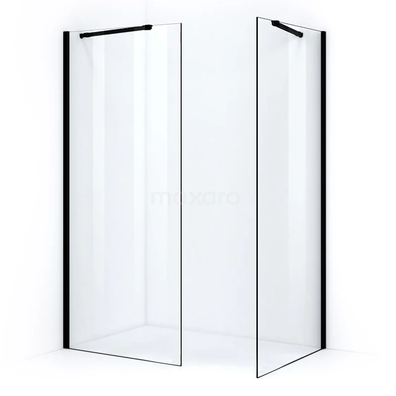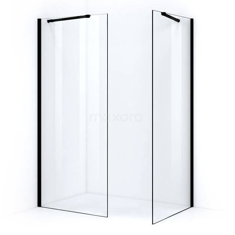 Pearl begehbare Dusche | 100x100 cm Matt Schwarz 2 feste Wände