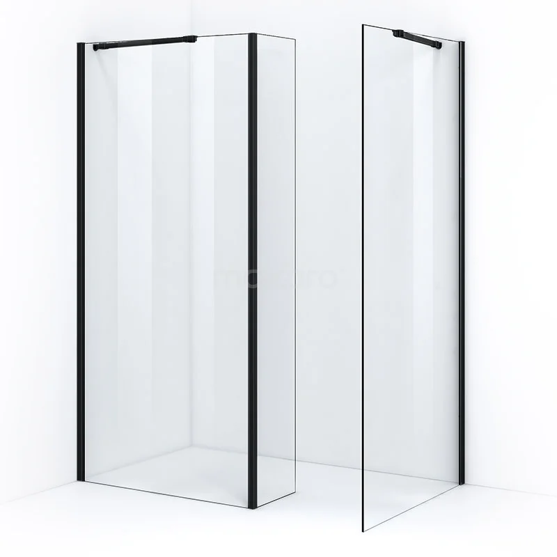Pearl begehbare Dusche | 100x100 cm Matt Schwarz 2 feste Wände mit Seitenwand