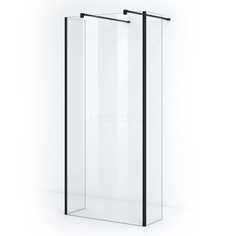 Pearl begehbare Dusche | 110 cm Matt Schwarz Freistehende Wand mit Seitenwänden