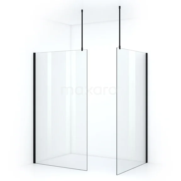 Pearl begehbare Dusche | 110x110 cm Matt Schwarz 2 feste Wände