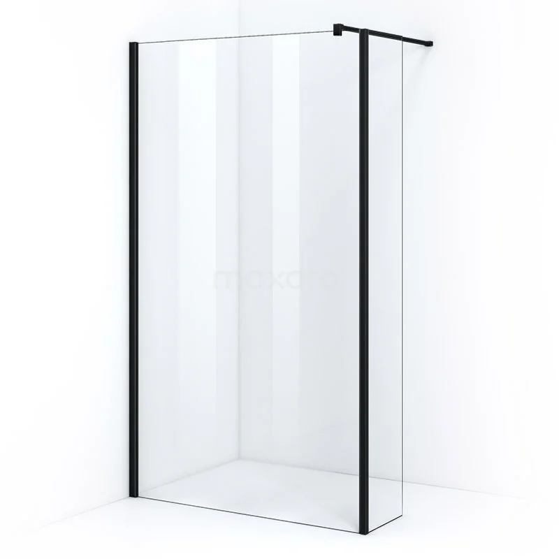 Pearl begehbare Dusche | 120 cm Matt Schwarz Feste Wand mit Seitenwand