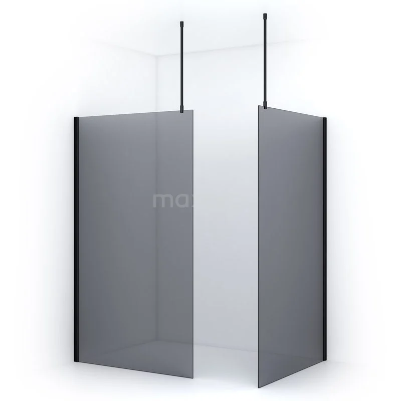 Pearl begehbare Dusche | 120x120 cm Matt Schwarz 2 feste Wände
