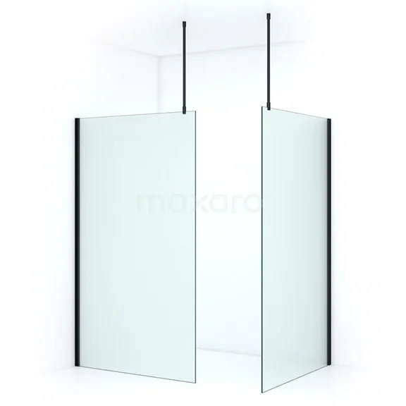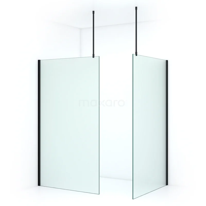 Pearl begehbare Dusche | 120x120 cm Matt Schwarz 2 feste Wände