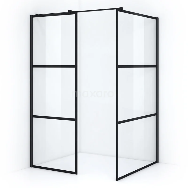 Pearl begehbare Dusche | 120x80 cm Matt Schwarz 2 feste Wände