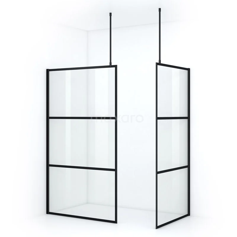 Pearl begehbare Dusche | 120x90 cm Matt Schwarz 2 feste Wände