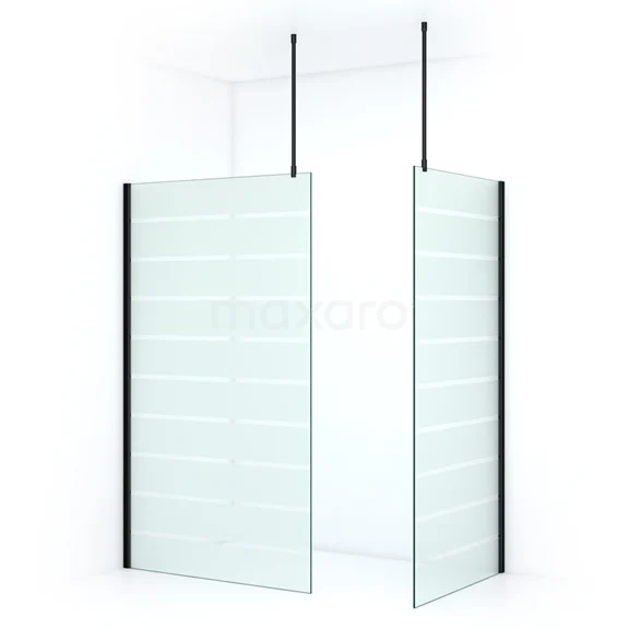 Pearl begehbare Dusche | 120x90 cm Matt Schwarz 2 feste Wände