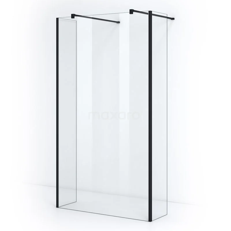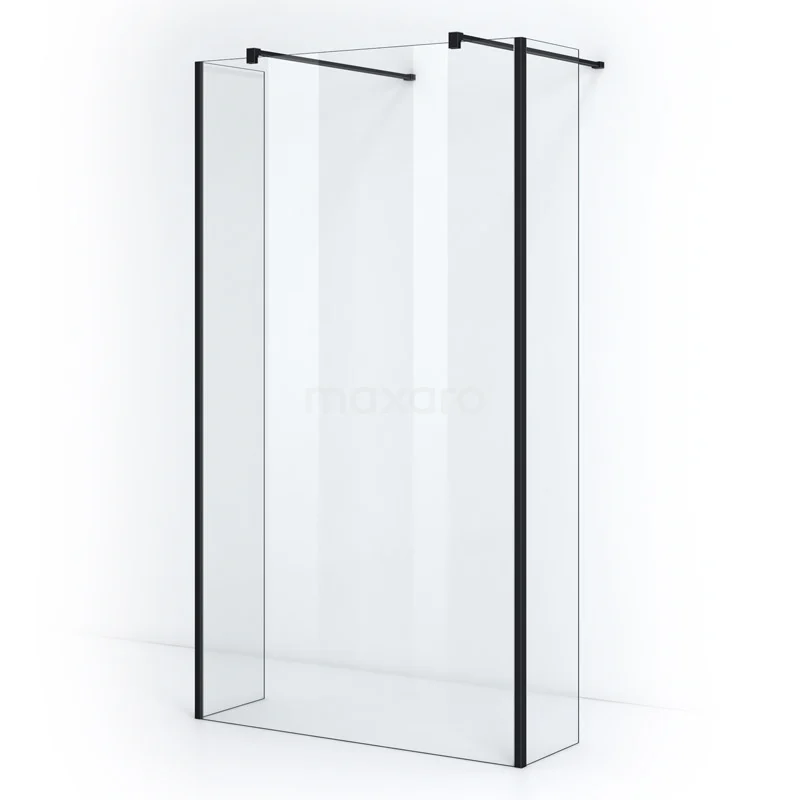 Pearl begehbare Dusche | 130 cm Matt Schwarz Freistehende Wand mit Seitenwänden