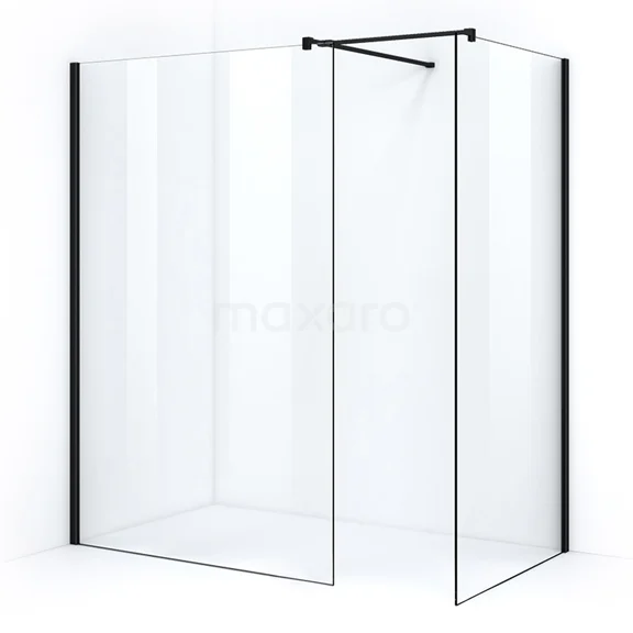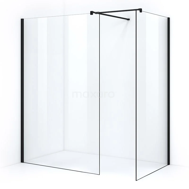 Pearl begehbare Dusche | 130x100 cm Matt Schwarz 2 feste Wände