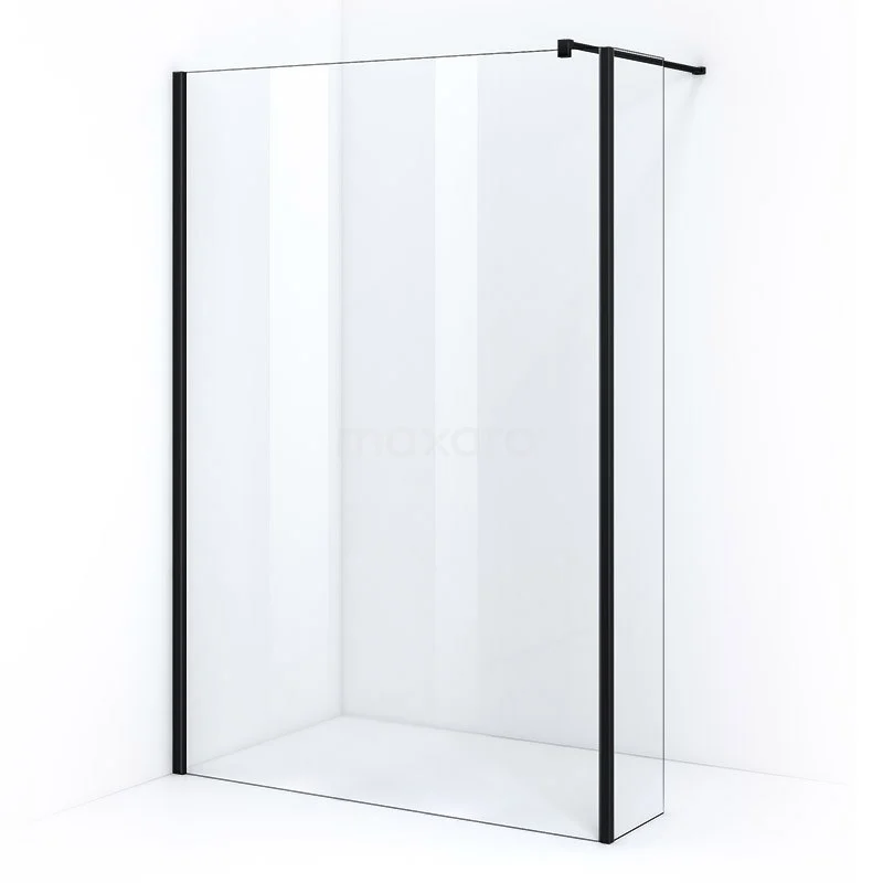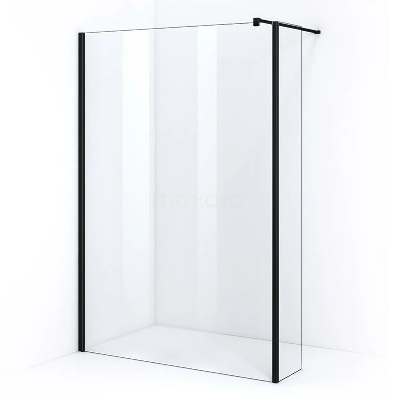 Pearl begehbare Dusche | 140 cm Matt Schwarz Feste Wand mit Seitenwand