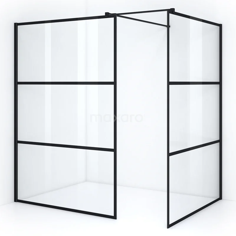 Pearl begehbare Dusche | 140x140 cm Matt Schwarz 2 feste Wände