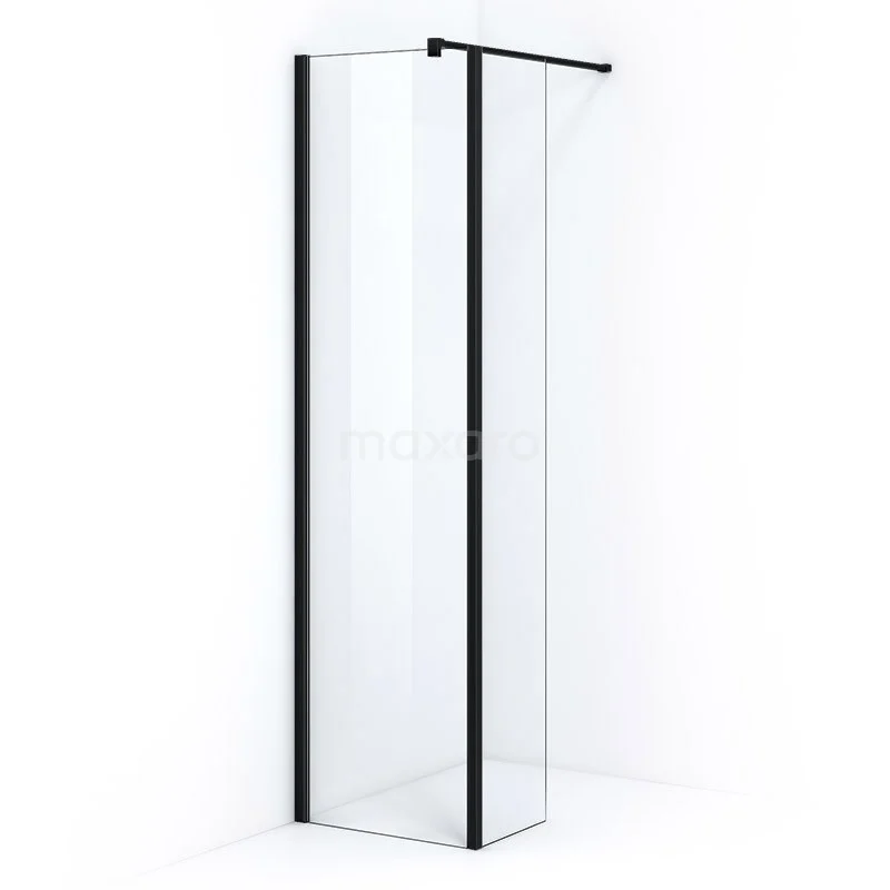 Pearl begehbare Dusche | 50 cm Matt Schwarz Feste Wand mit Seitenwand