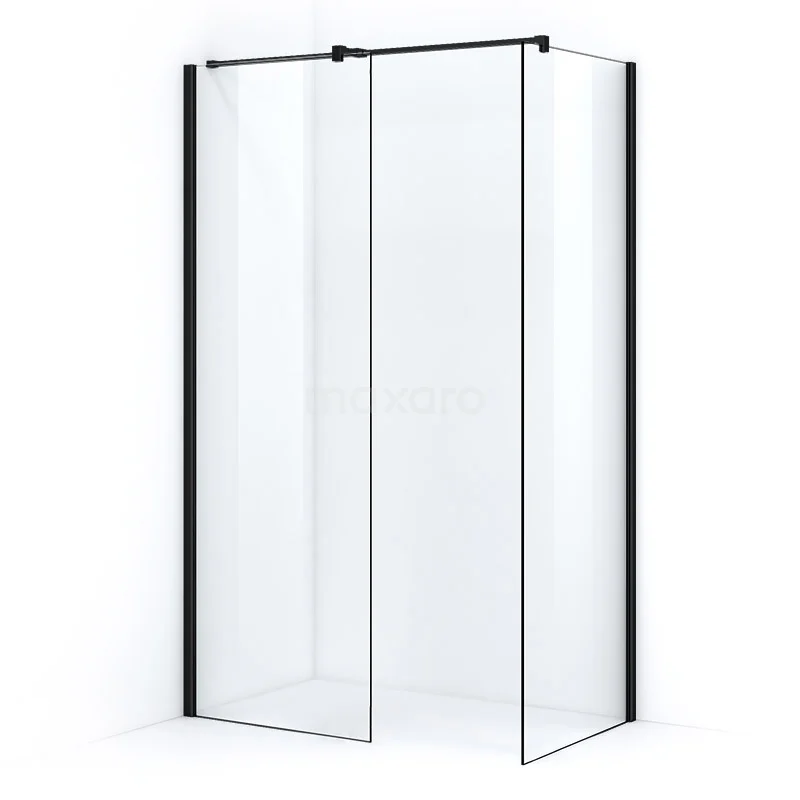 Pearl begehbare Dusche | 70x70 cm Matt Schwarz 2 feste Wände