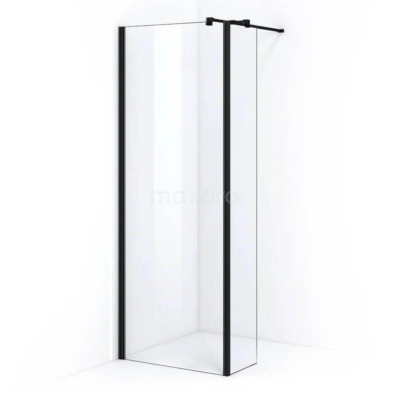 Pearl begehbare Dusche | 80 cm Matt Schwarz Feste Wand mit Seitenwand