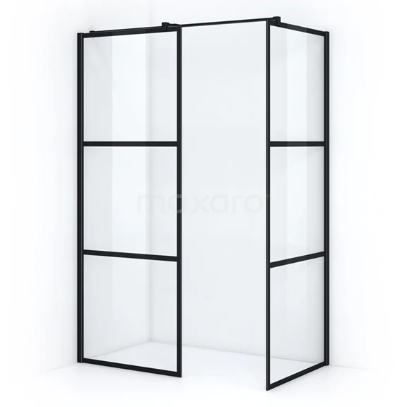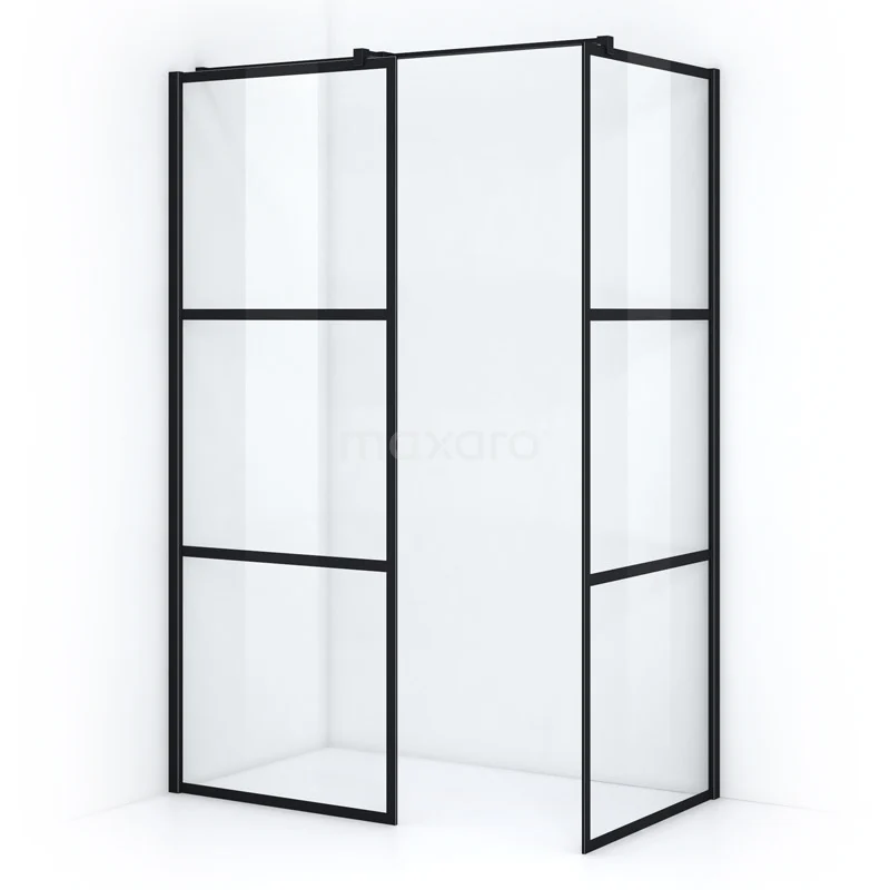 Pearl begehbare Dusche | 80x80 cm Matt Schwarz 2 feste Wände