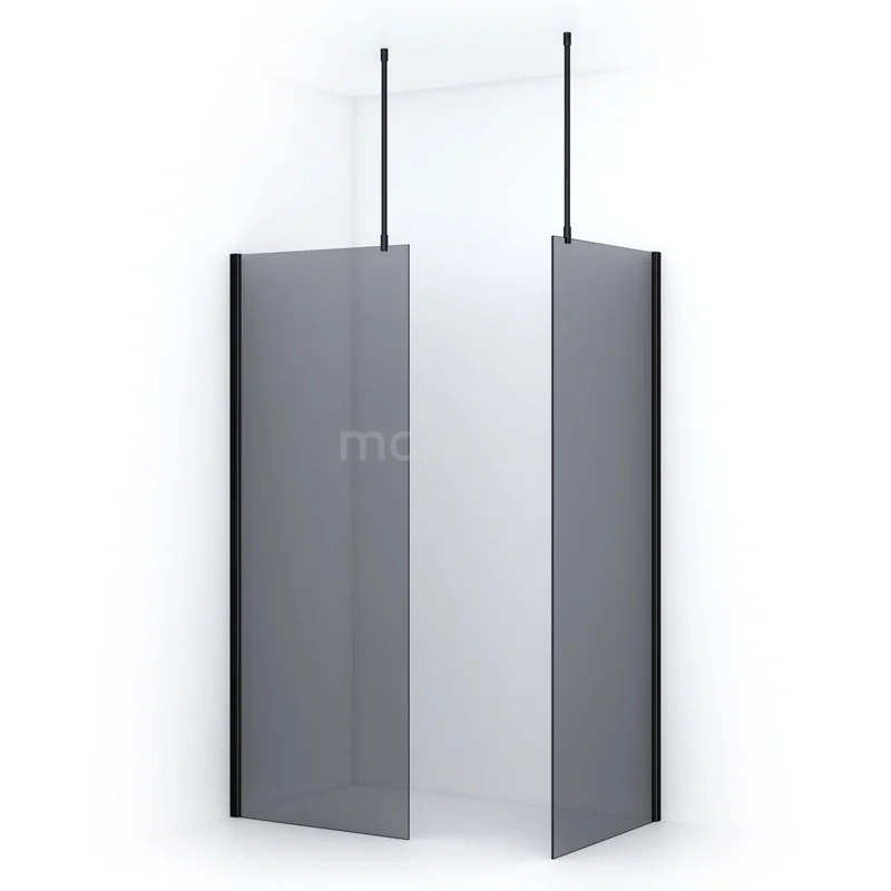 Pearl begehbare Dusche | 80x80 cm Matt Schwarz 2 feste Wände