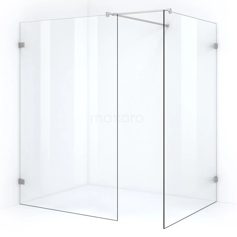 - 2 Festwände mit Befestigungspunkten aus Edelstahl und Stabilisationsstange mit verlängertem T-Stück, zum Verbinden von 2 Glaswänden miteinander