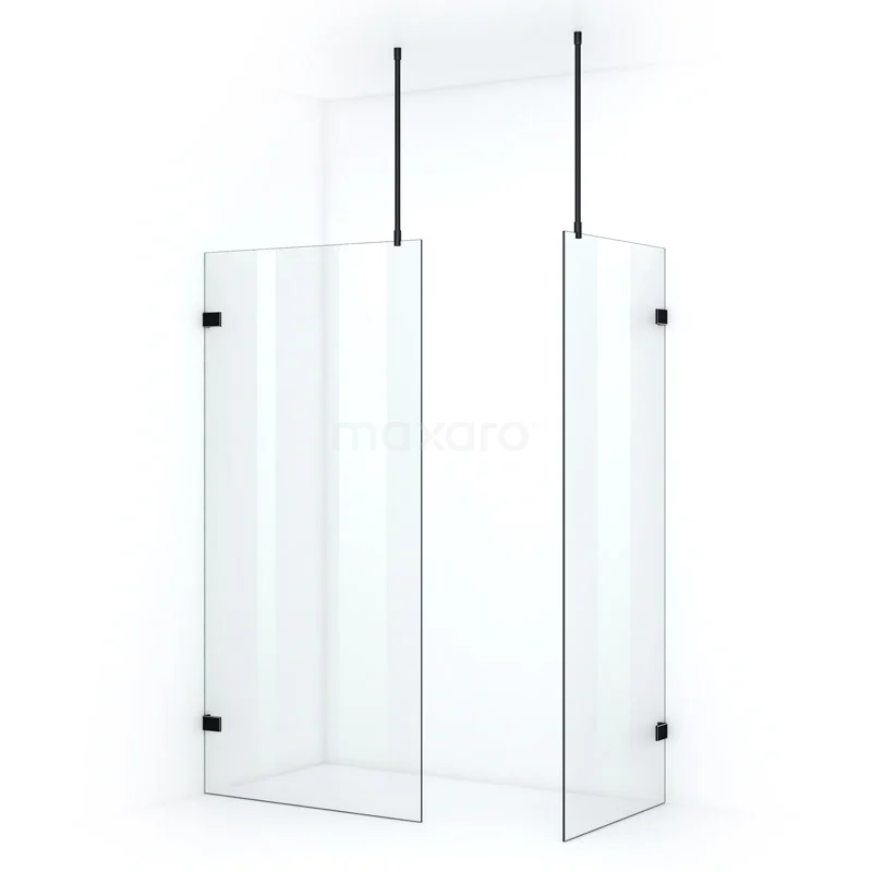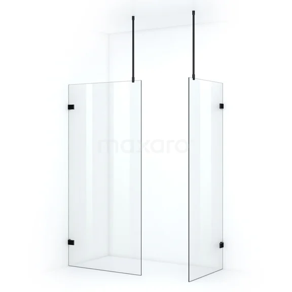 Quartz begehbare Dusche | 90x80 cm Matt Schwarz 2 feste Wände