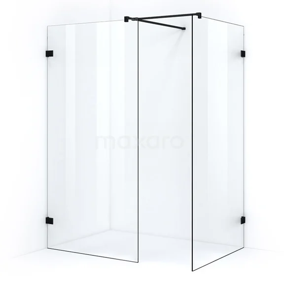 Quartz begehbare Dusche | 90x90 cm Matt Schwarz 2 feste Wände