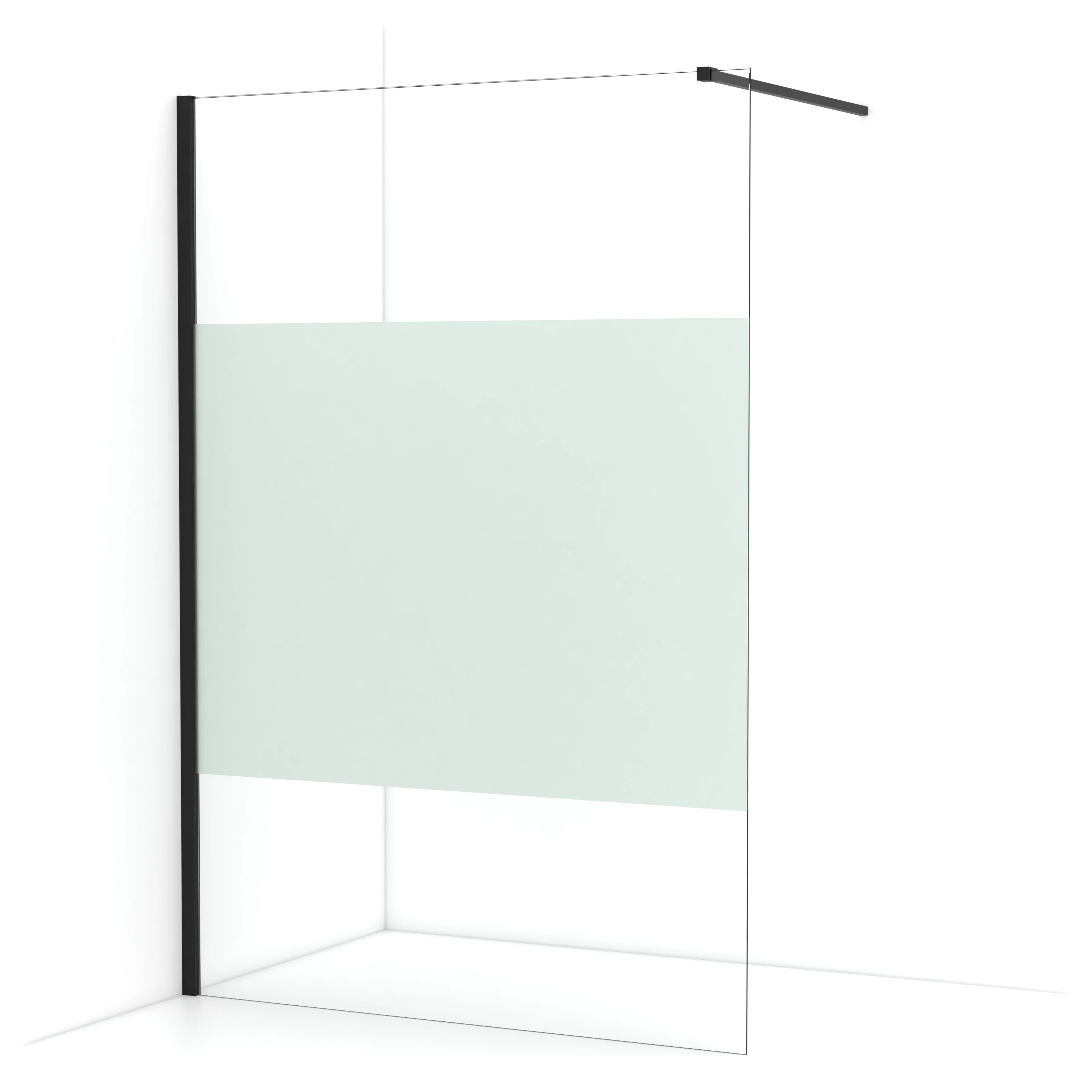 De glaswand is gespiegeld te monteren.