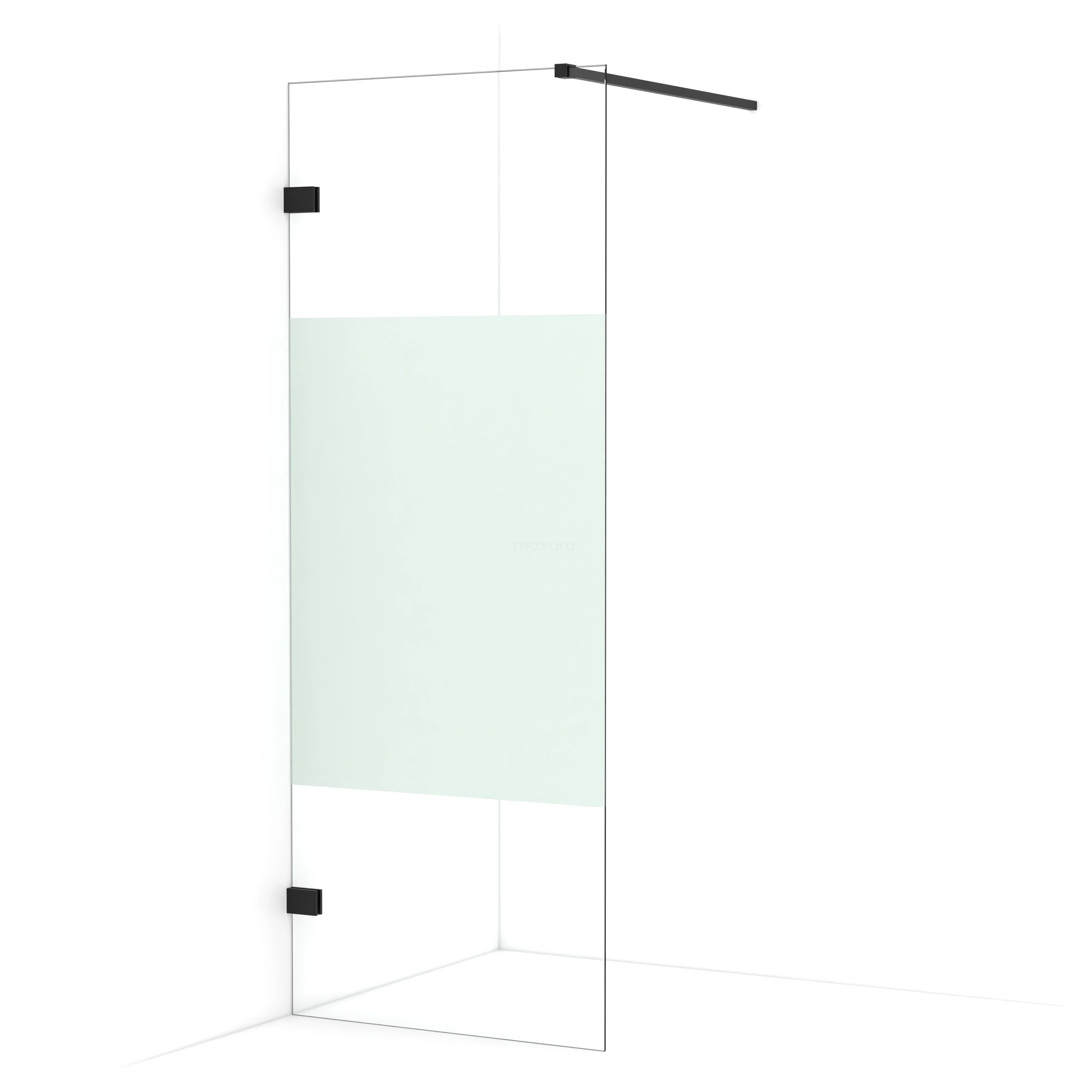 De glaswand is gespiegeld te monteren.