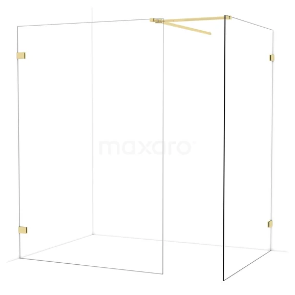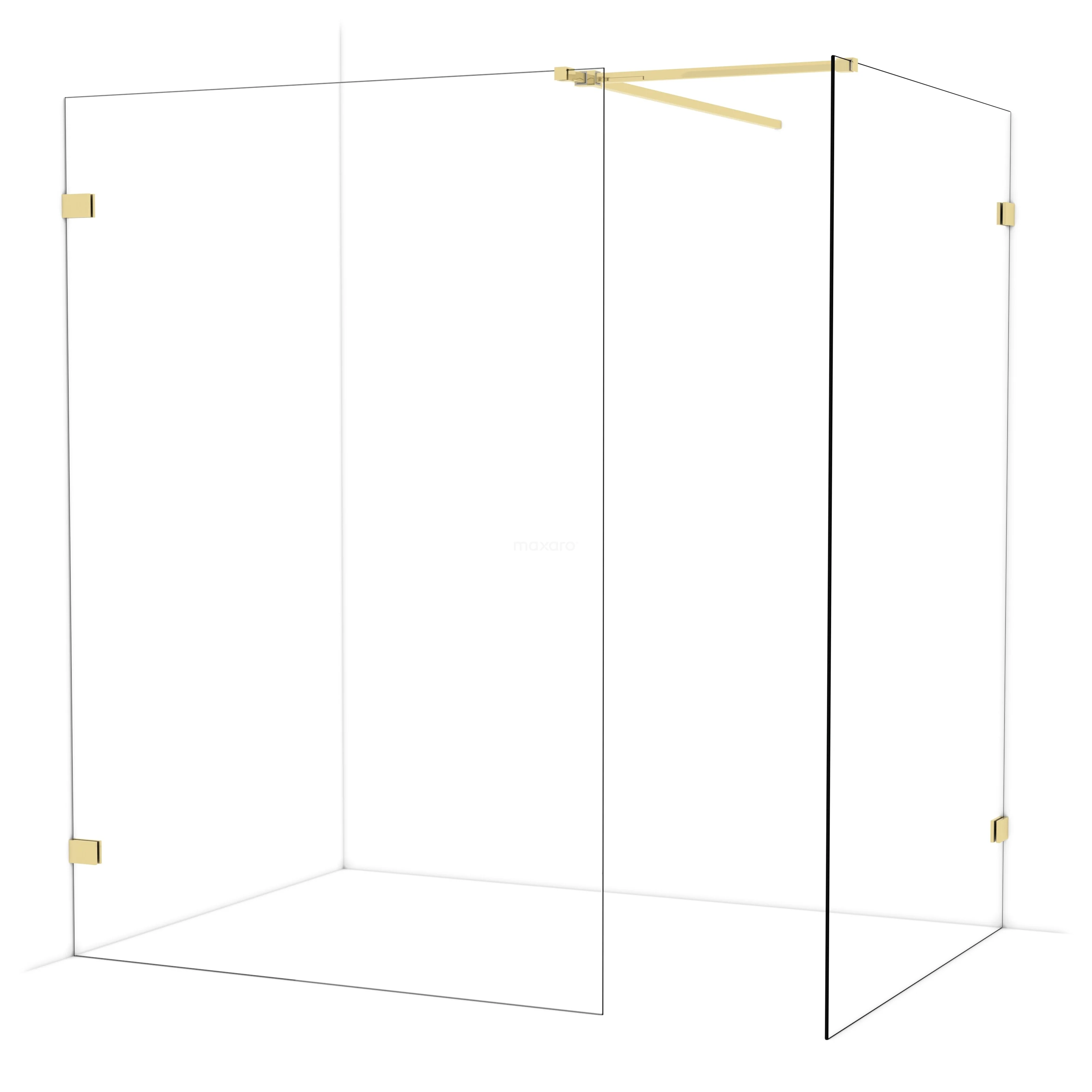 In der stilvollen begehbaren Dusche Diamond mit den Maßen 140x130 cm können Sie jeden Tag herrliche Duschsitzungen genießen. Sie hat ein raffiniertes und luxuriöses Design in glänzendem Hellgold und verfügt über Klarglas für ein großzügiges Raumgefühl.