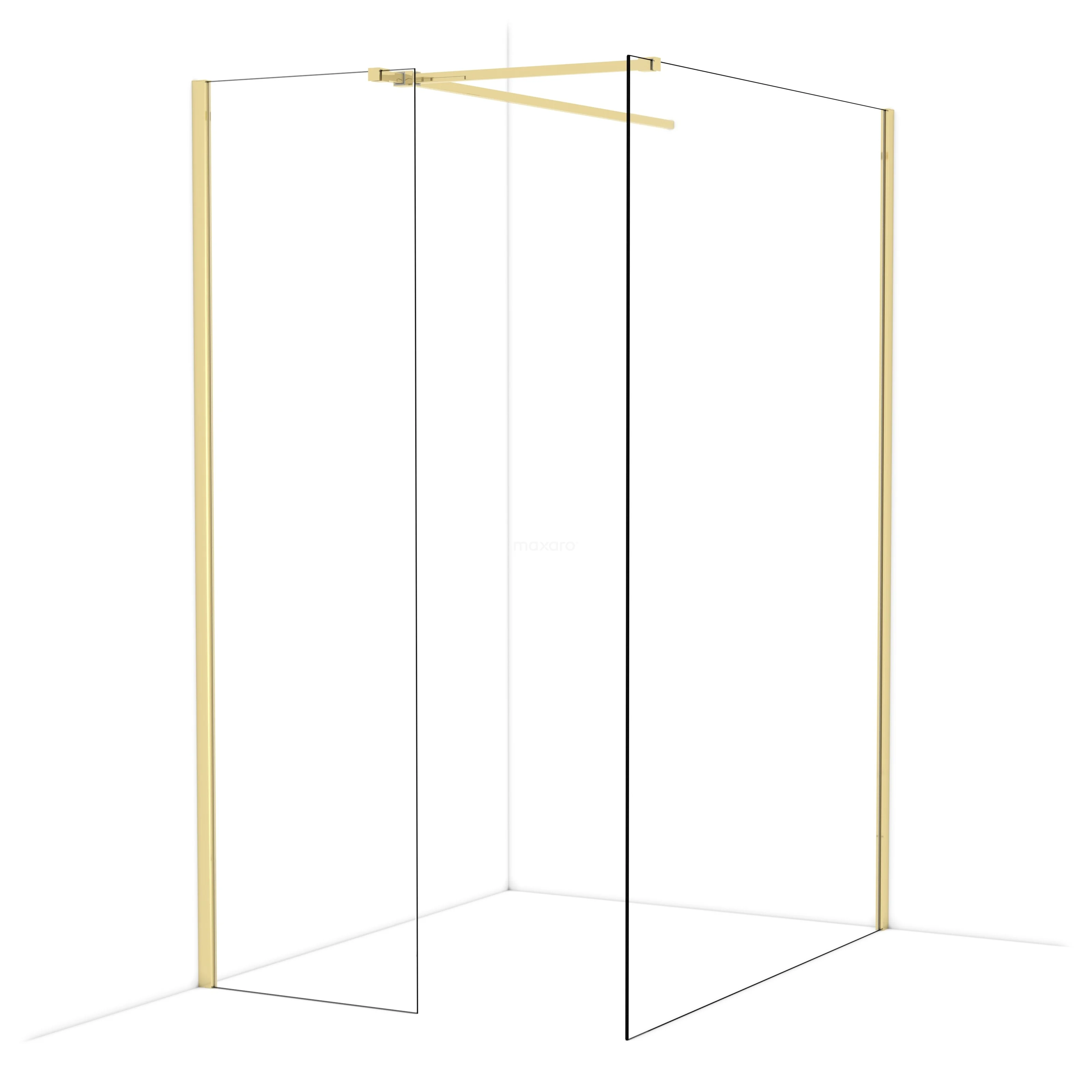 In der stilvollen begehbaren Dusche Diamond mit den Maßen 140x60 cm können Sie jeden Tag herrliche Duschsitzungen genießen. Sie hat ein raffiniertes und luxuriöses Design in glänzendem Hellgold und verfügt über Klarglas für ein großzügiges Raumgefühl.