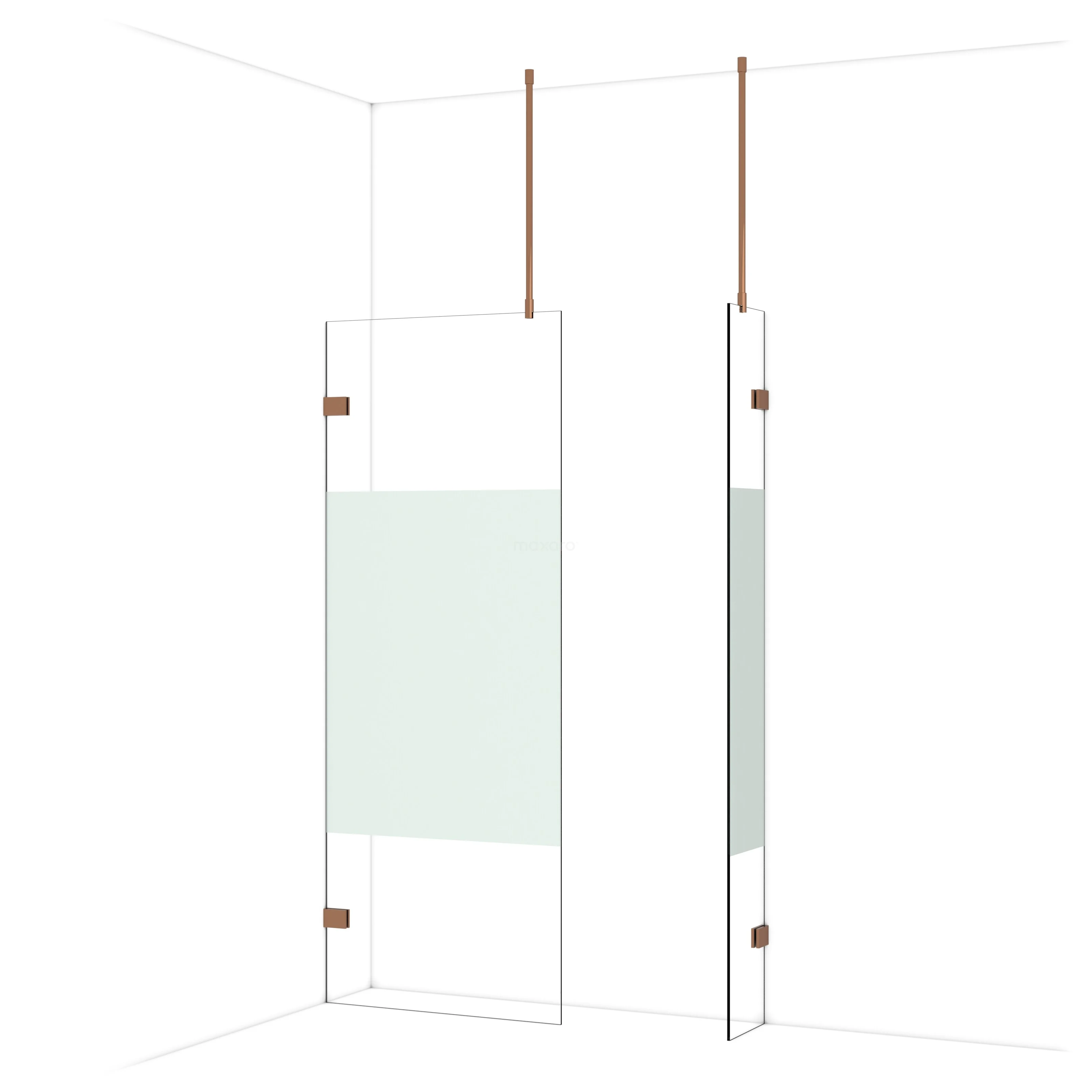 De glaswand is gespiegeld te monteren.