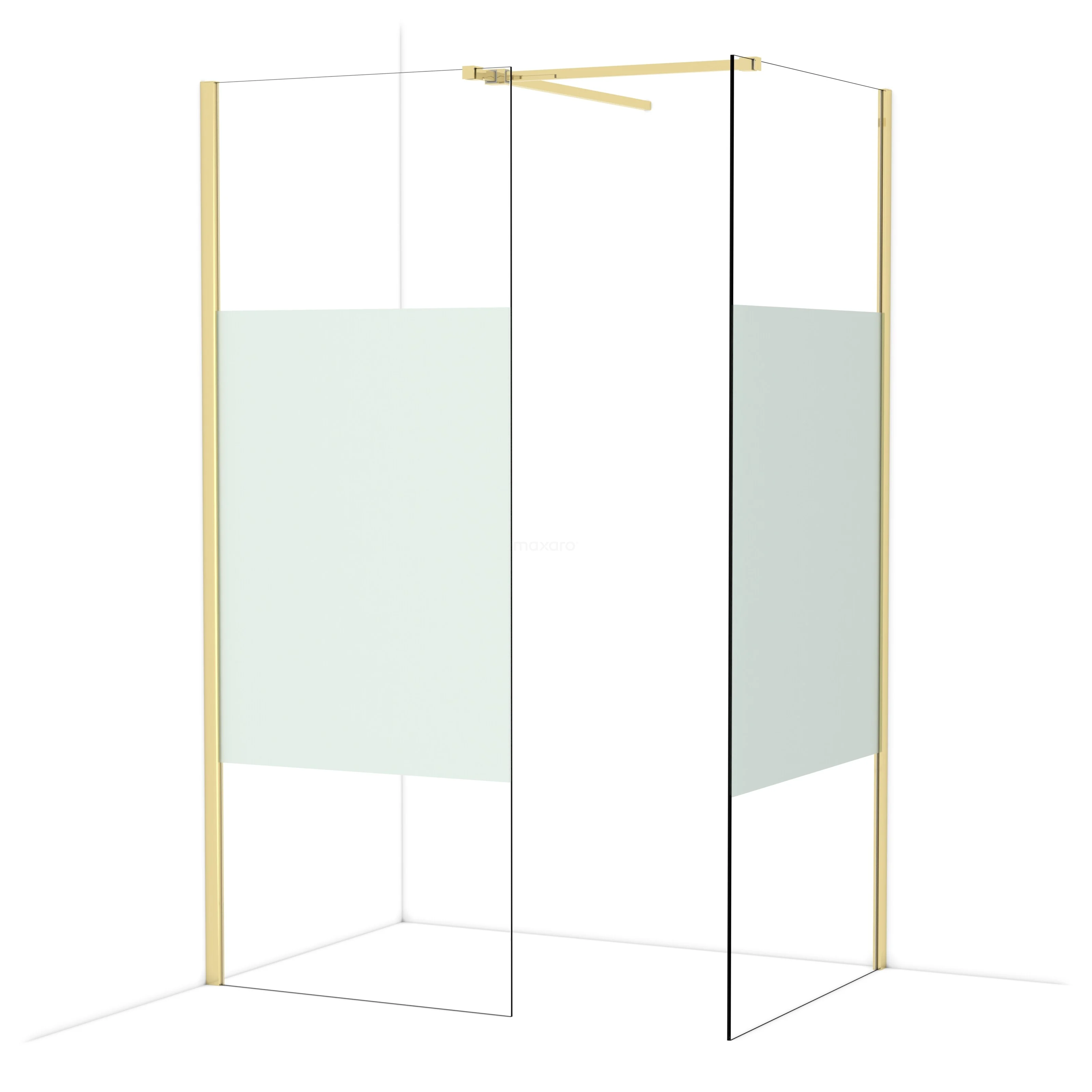 In der stilvollen begehbaren Dusche Diamond mit den Maßen 90x80 cm können Sie jeden Tag herrliche Duschsitzungen genießen. Sie hat ein raffiniertes und luxuriöses Design in glänzendem Hellgold und verfügt über Klarglas mit mattem Streifen für mehr Privatsphäre.