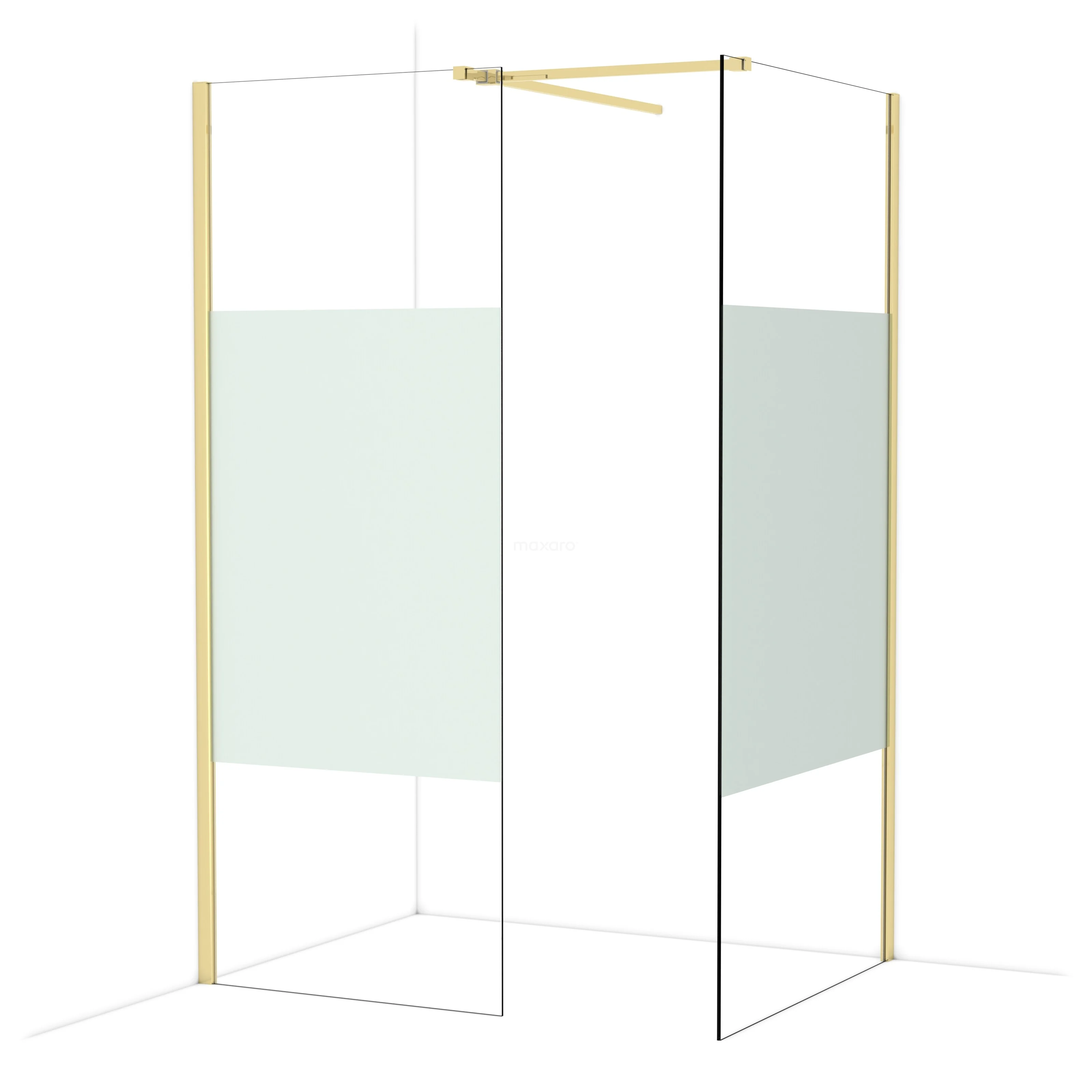 In der stilvollen begehbaren Dusche Diamond mit den Maßen 100x80 cm können Sie jeden Tag herrliche Duschsitzungen genießen. Sie hat ein raffiniertes und luxuriöses Design in glänzendem Hellgold und verfügt über Klarglas mit mattem Streifen für mehr Privatsphäre.