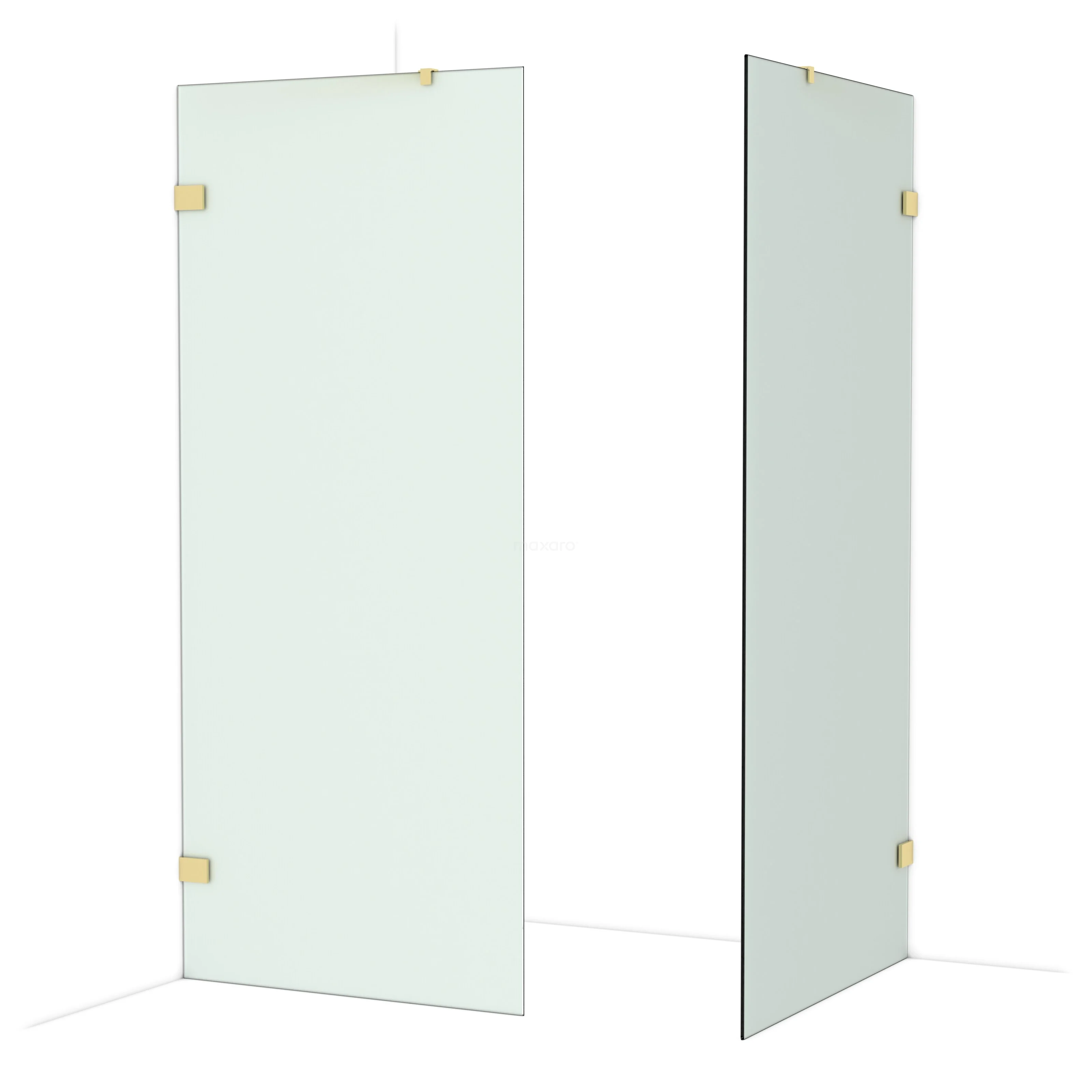 De glaswand is gespiegeld te monteren.