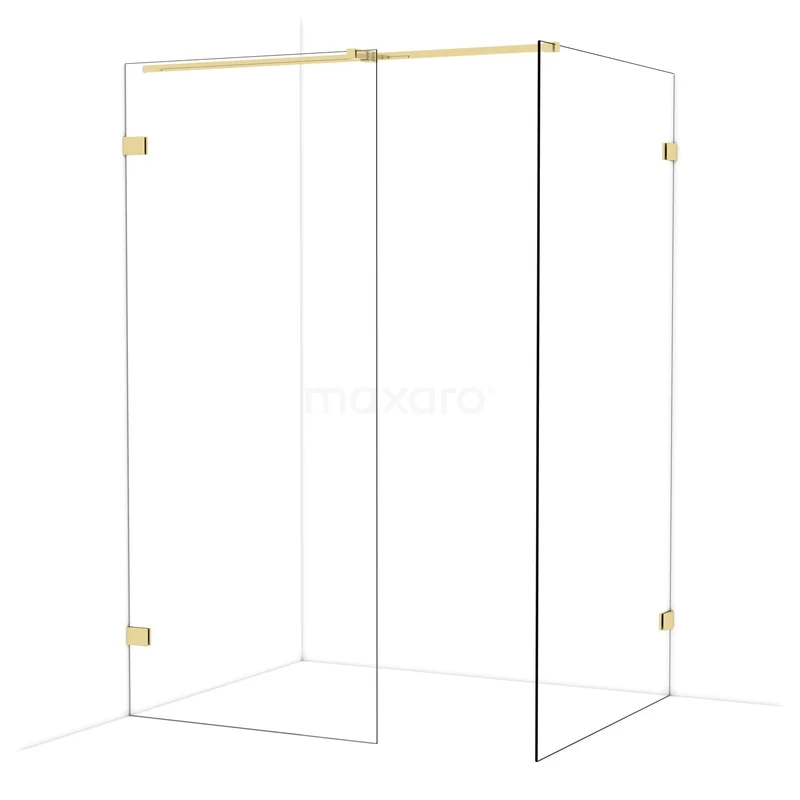 Diamond begehbare Dusche | 110x90 cm Glänzendes Hellgold 2 feste Wände