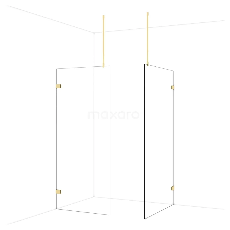Diamond begehbare Dusche | 110x90 cm Glänzendes Hellgold 2 feste Wände