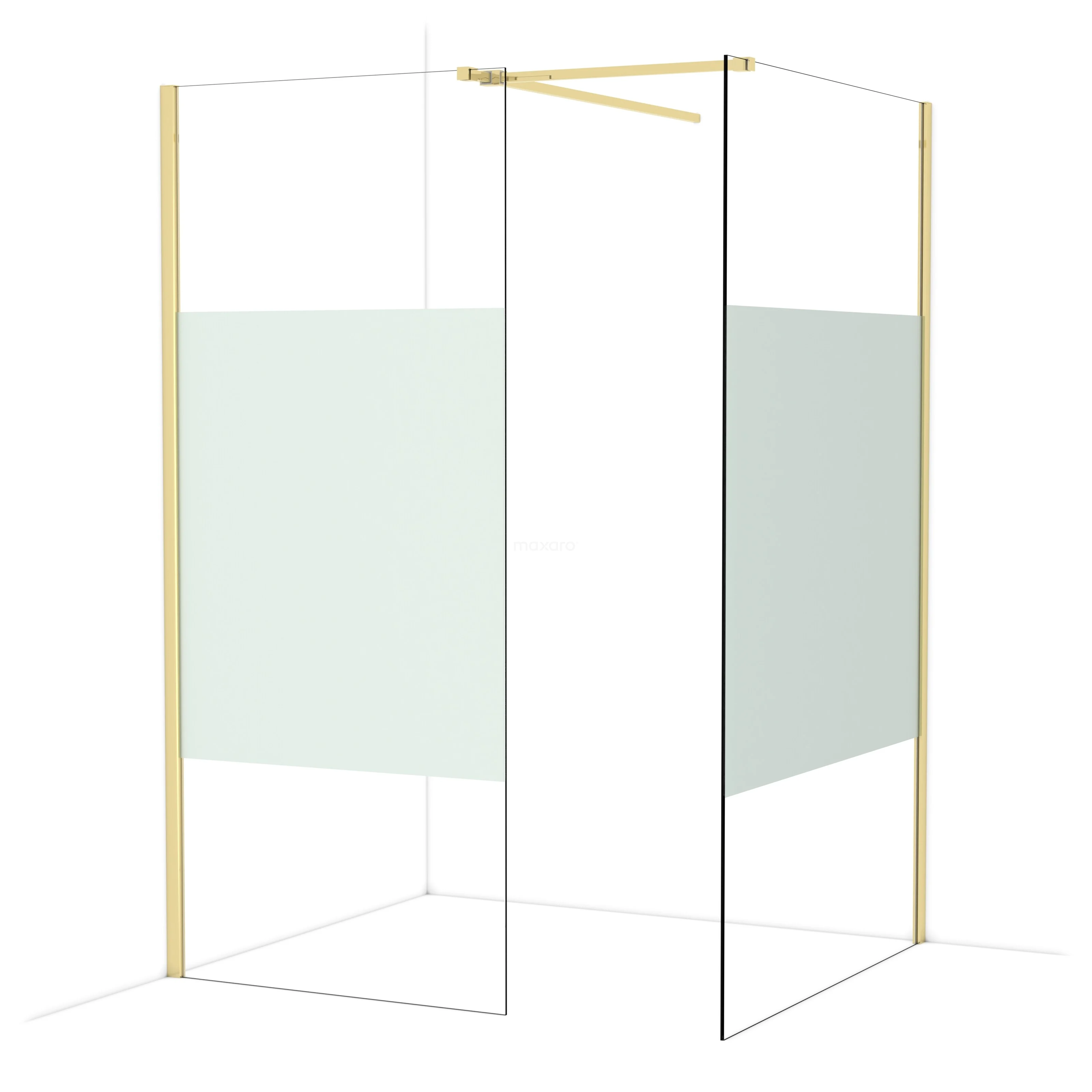 Diamond begehbare Dusche | 120x90 cm Glänzendes Hellgold 2 feste Wände