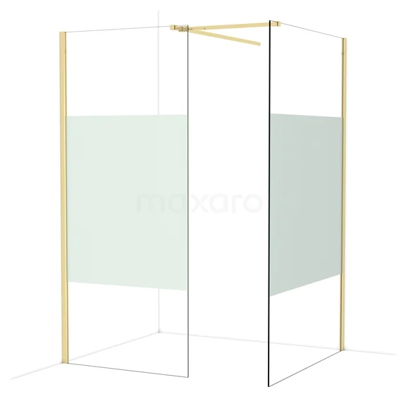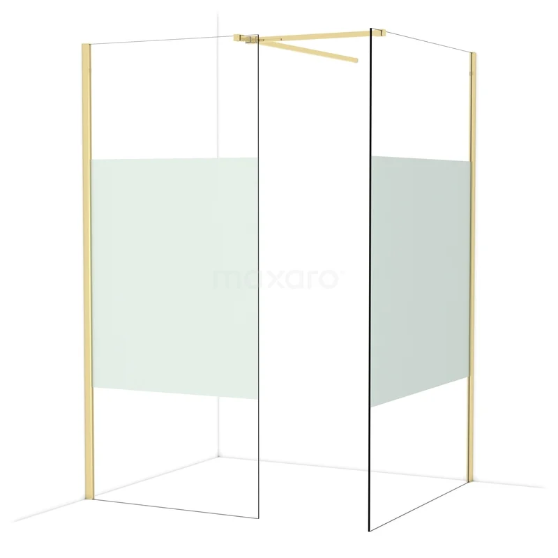 In der stilvollen begehbaren Dusche Diamond mit den Maßen 120x90 cm können Sie jeden Tag herrliche Duschsitzungen genießen. Sie hat ein raffiniertes und luxuriöses Design in glänzendem Hellgold und verfügt über Klarglas mit mattem Streifen für mehr Privatsphäre.