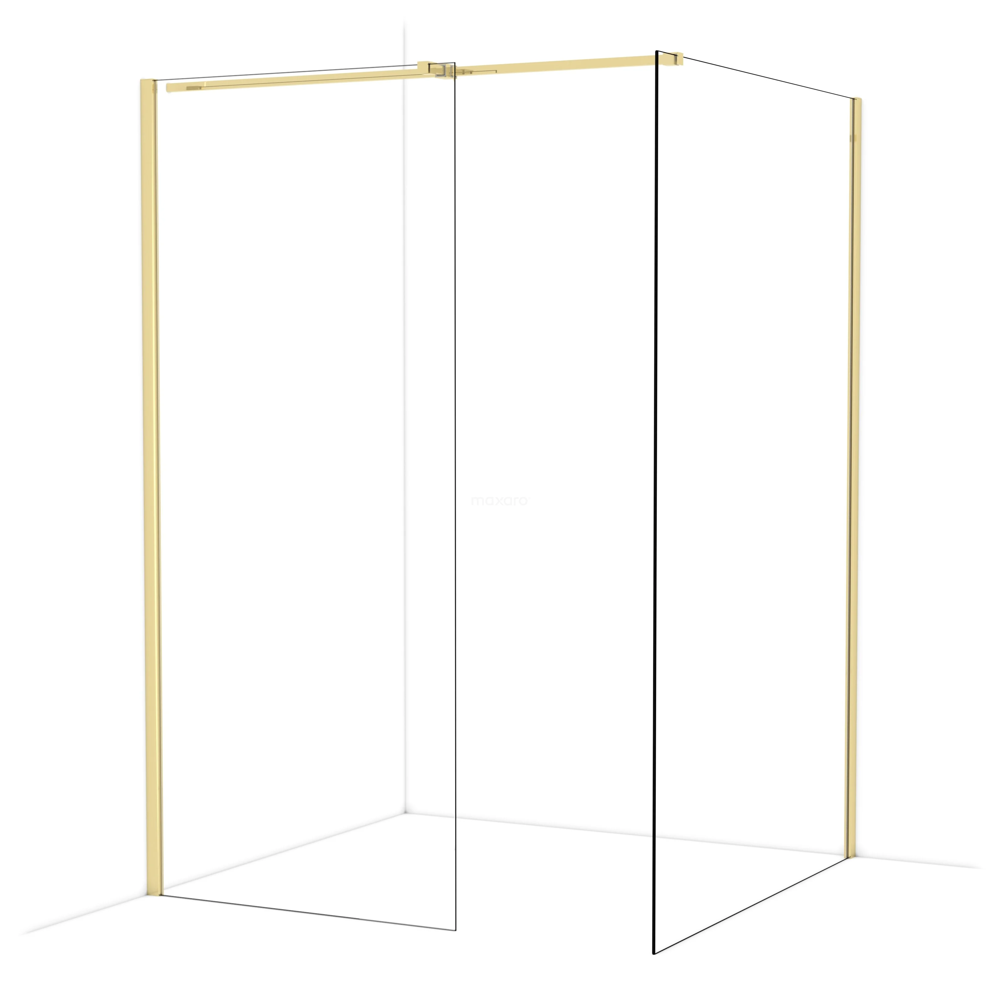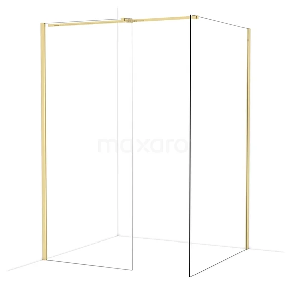 Diamond begehbare Dusche | 130x90 cm Glänzendes Hellgold 2 feste Wände