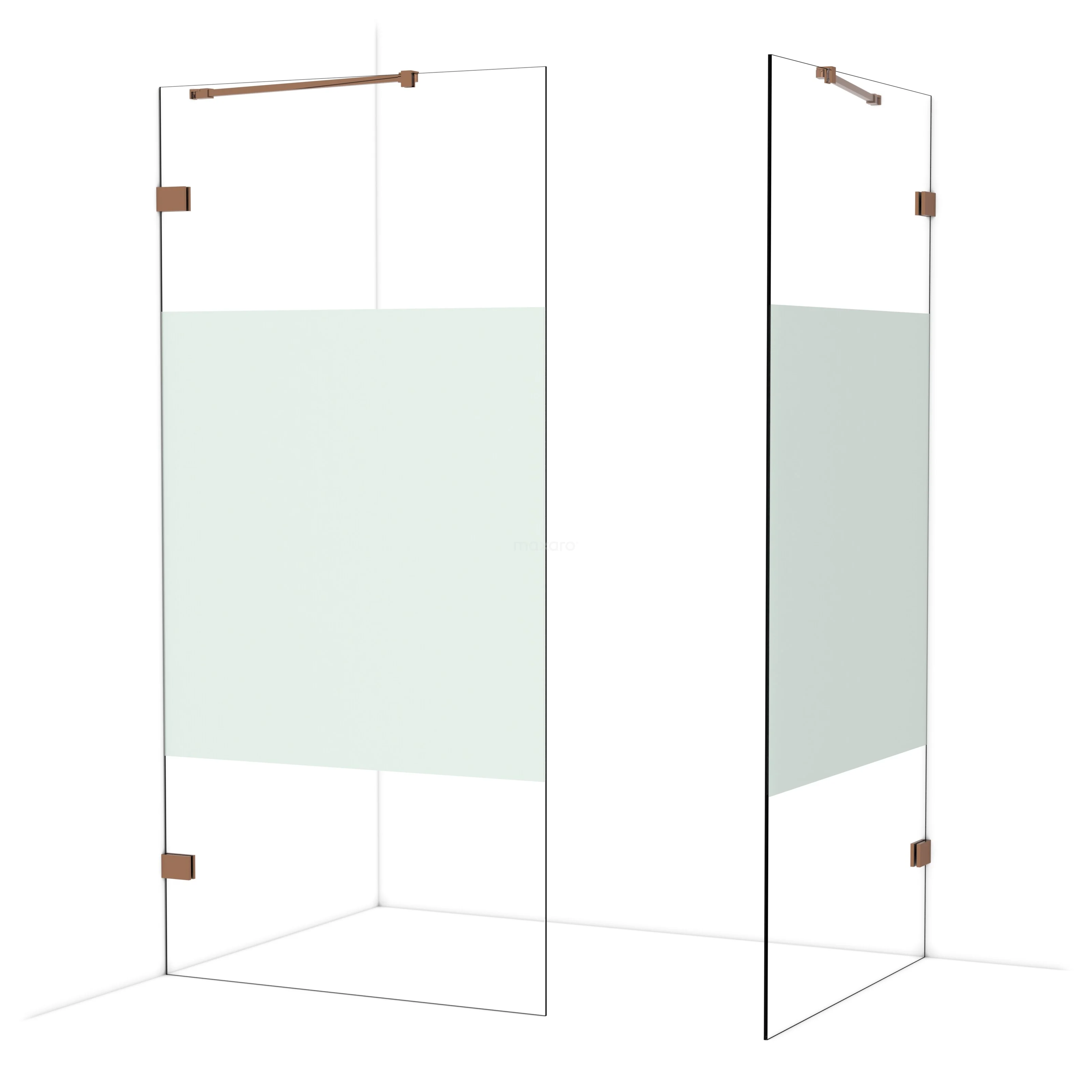 De glaswand is gespiegeld te monteren.