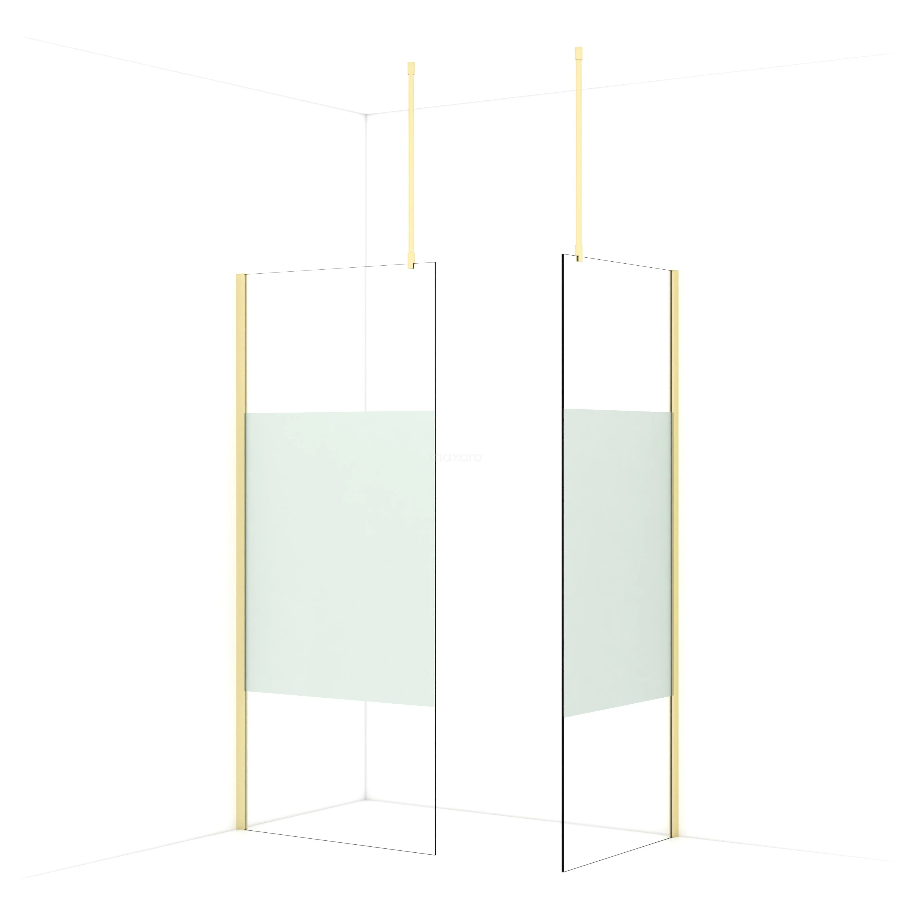 De glaswand is gespiegeld te monteren.