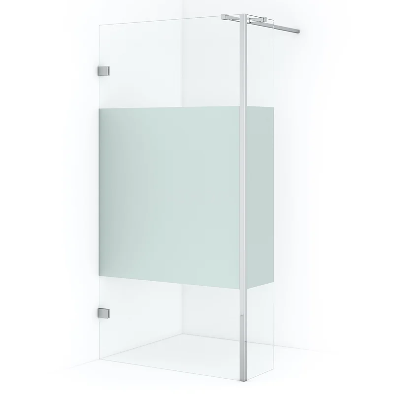 In der stilvollen begehbaren Dusche Diamond können Sie jeden Tag herrliche Duschsitzungen genießen. Sie hat ein zeitloses Chrom-Finish und verfügt über Klarglas mit einem mattierten Streifen für mehr Privatsphäre. Die Dusche ist verstellbar und lässt sich daher leicht anpassen. Die feste Wand hat eine Verstellbarkeit von 96,8 bis 97,1 cm, einschließlich des Glases und des Eckprofils. Die Seitenwand hat eine feste Größe von 28,1 cm, einschließlich des Eckprofils.
