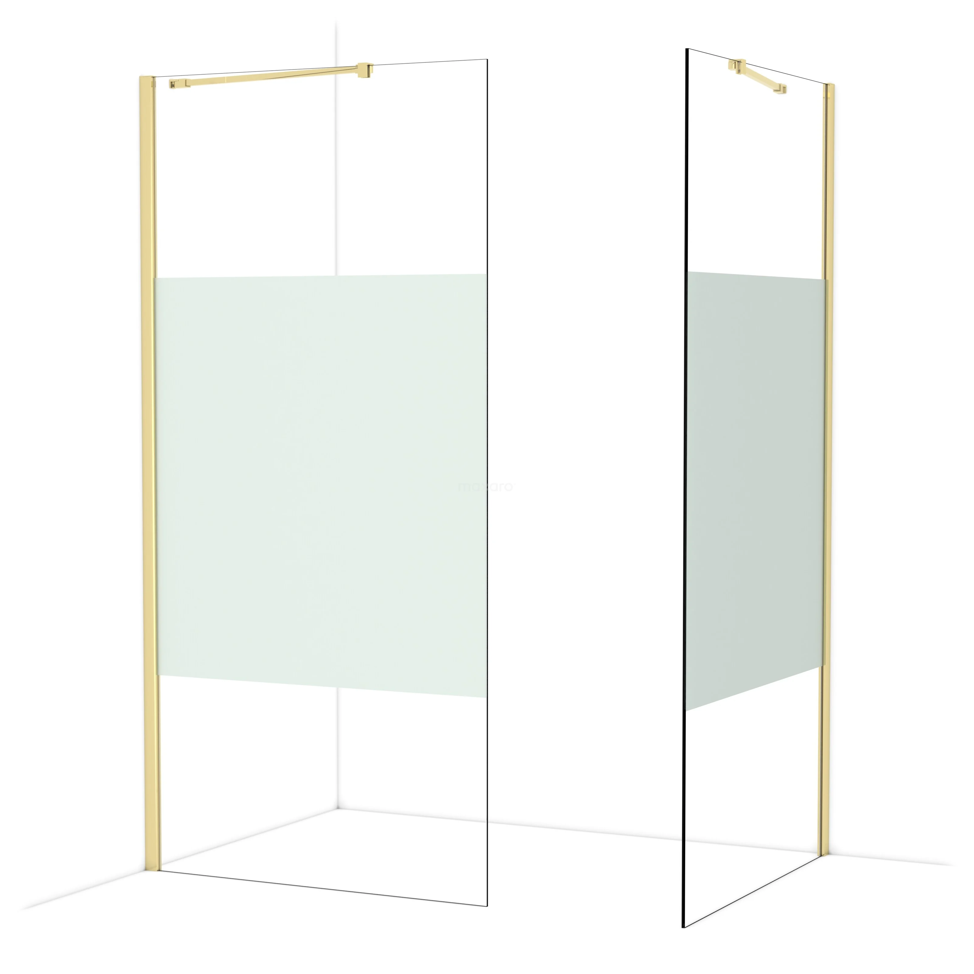 In der stilvollen begehbaren Dusche Diamond mit den Maßen 100x100 cm können Sie jeden Tag herrliche Duschsitzungen genießen. Sie hat ein raffiniertes und luxuriöses Design in glänzendem Hellgold und verfügt über Klarglas mit mattem Streifen für mehr Privatsphäre.