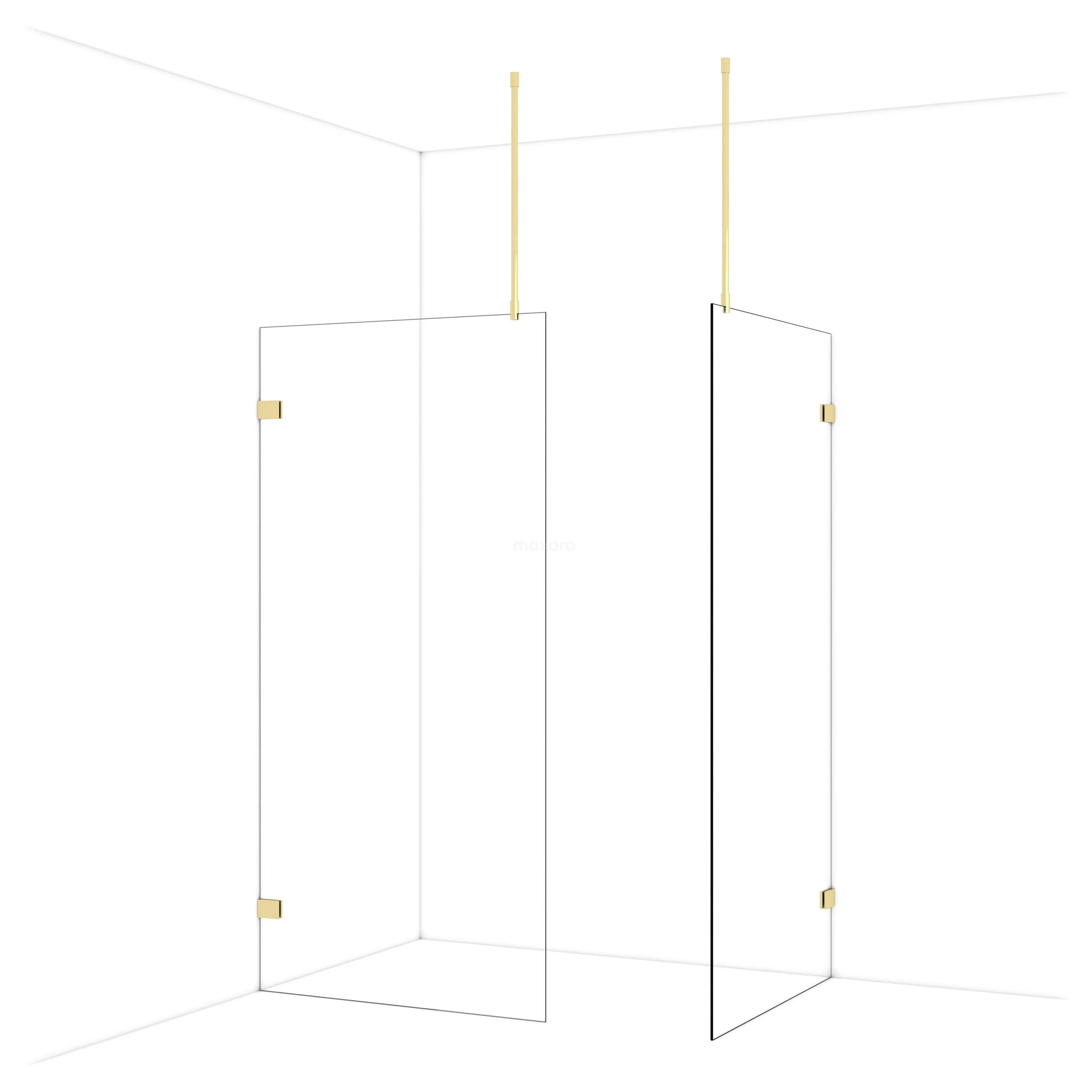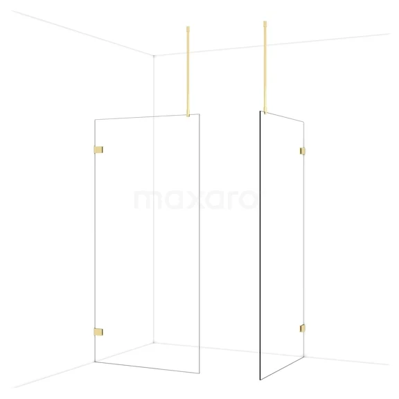 Diamond begehbare Dusche | 100x100 cm Glänzendes Hellgold 2 feste Wände