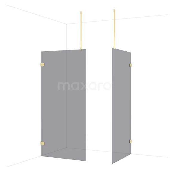 Diamond begehbare Dusche | 100x100 cm Glänzendes Hellgold 2 feste Wände