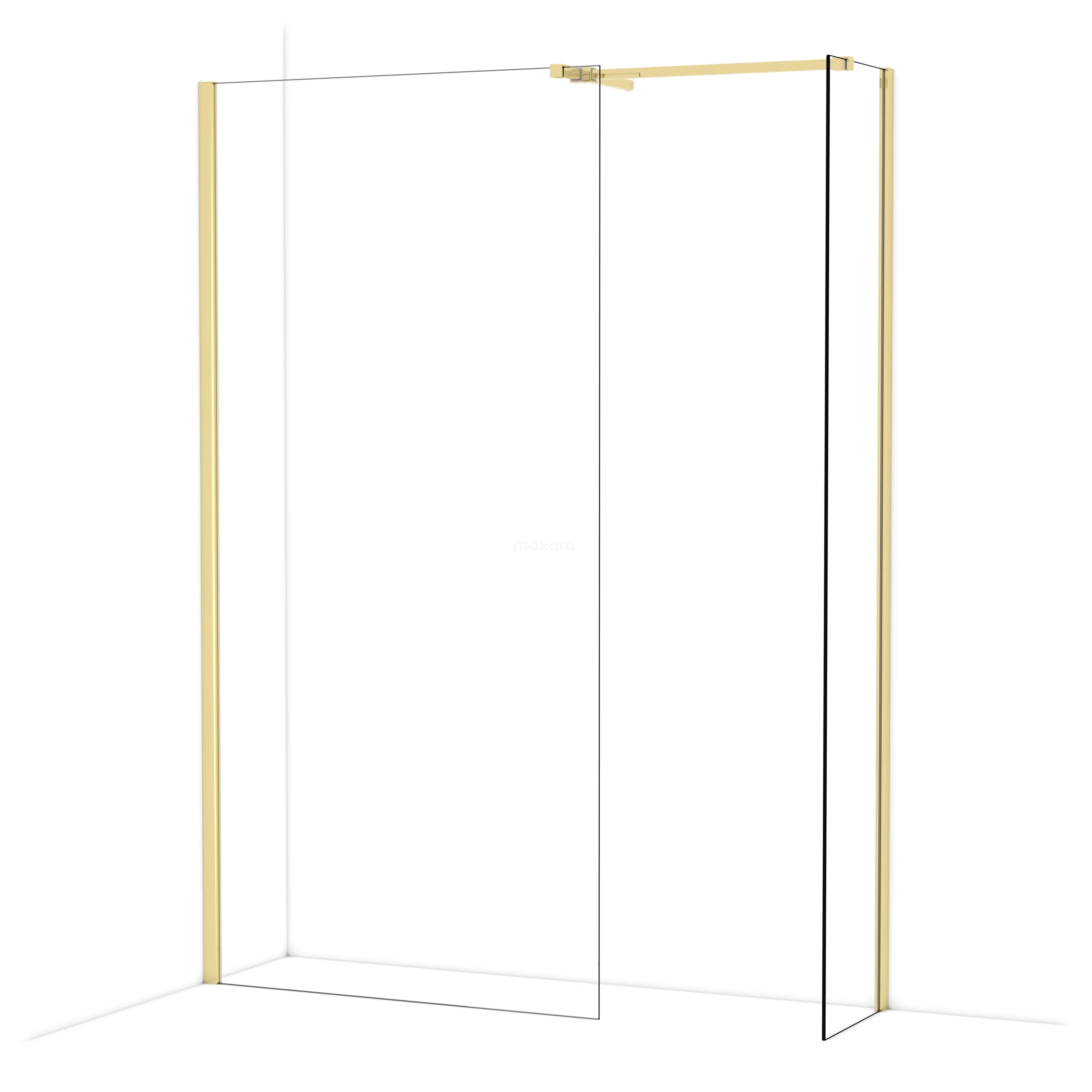 Diamond begehbare Dusche | 100x40 cm Glänzendes Hellgold 2 feste Wände